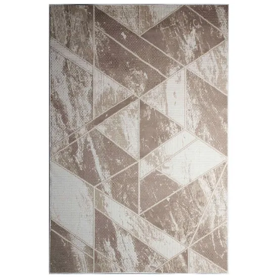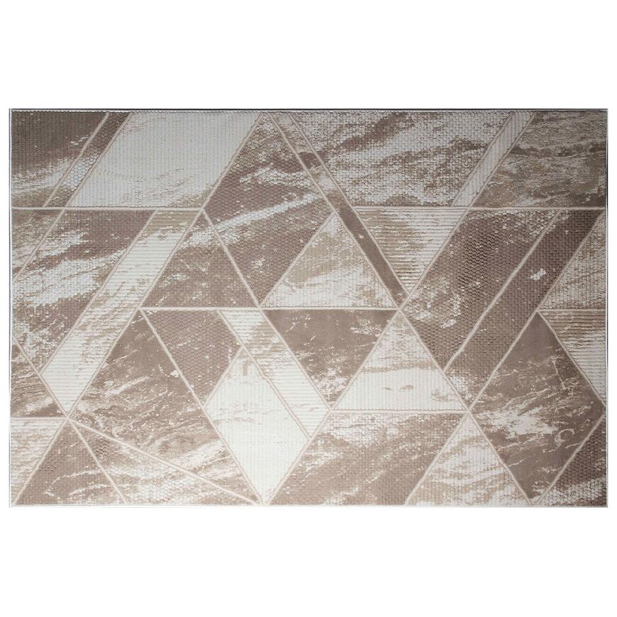 Dywan Merlyne w eleganckim połączeniu kremowego i ciemnego beżu to stylowy dodatek do salonu, który wprowadza przytulność i nowoczesny charakter wnętrza. Prostokątny dywan o wymiarach 140x190 cm z geometrycznym wzorem nadaje aranżacji dekoracyjny akcent i harmonijnie współgra z nowoczesnymi meblami oraz dodatkami.