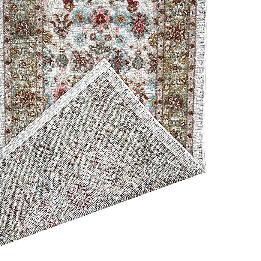 Dywan Piar 54308 o wymiarach 80 × 150 cm to propozycja dla osób, które chcą wprowadzić abstrakcyjny, nowoczesny akcent do salonu. Kremowy kolor z delikatnym, wielobarwnym wzorem sprawia, że wnętrze staje się przytulne i eleganckie, tworząc komfortową przestrzeń do relaksu w salonie.