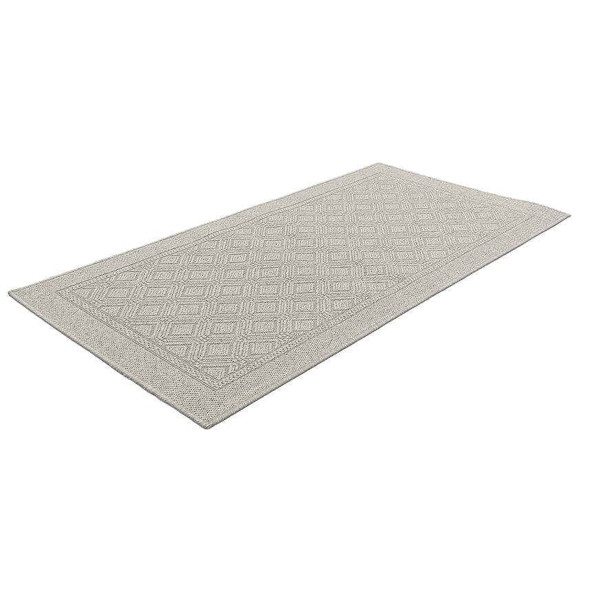 Dywan płaskotkany Olymp 60x110 cm beżowy – nowoczesny dywan geometryczny z polipropylenu. Antyalergiczny, odporny na wilgoć, do wnętrz i na zewnątrz, przystosowany do ogrzewania podłogowego.