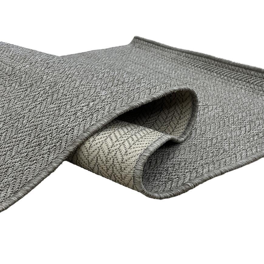 Dywan płaskotkany Olymp 80x150 cm szary – nowoczesny dywan geometryczny z polipropylenu. Antyalergiczny, do wnętrz i na zewnątrz, przystosowany do ogrzewania podłogowego.