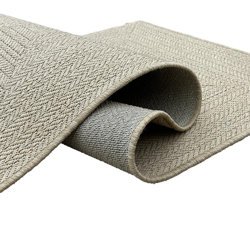 Dywan wykonano maszynowo z 100% polipropylenu. Płaskotkana struktura o wysokości włosa 1 mm ułatwia utrzymanie w czystości i zwiększa odporność na codzienne użytkowanie. Waga 1200 g/m² i całkowita waga 1,44 kg zapewniają stabilność przy zachowaniu lekkości przenoszenia.