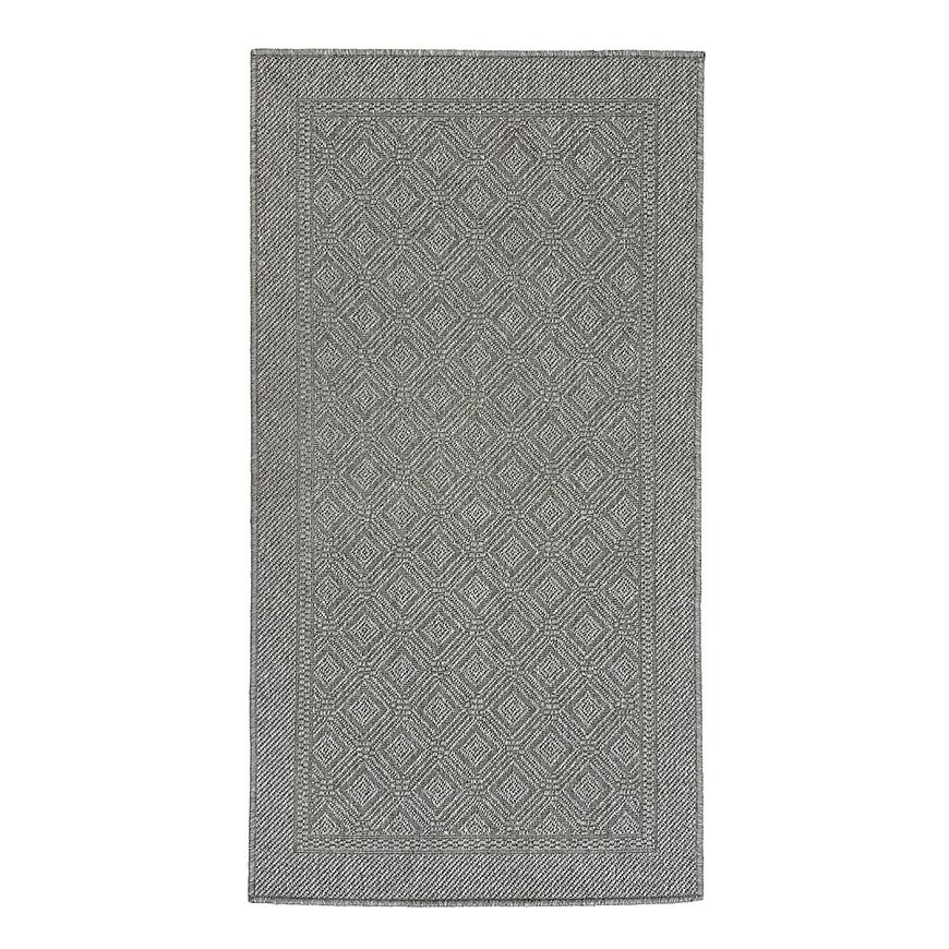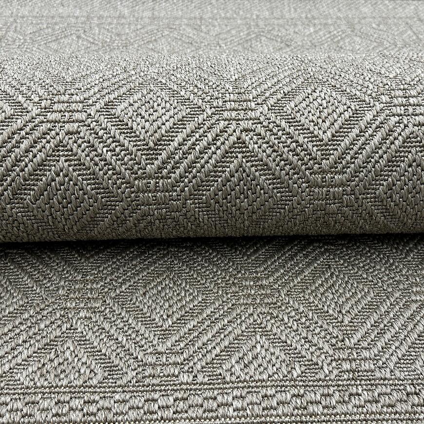 Dywan płaskotkany Olymp 80x150 cm szary – nowoczesny dywan geometryczny z polipropylenu. Antyalergiczny, do wnętrz i na zewnątrz, przystosowany do ogrzewania podłogowego.