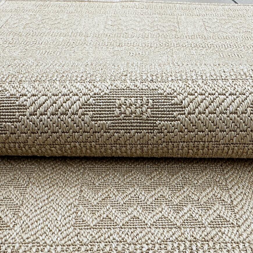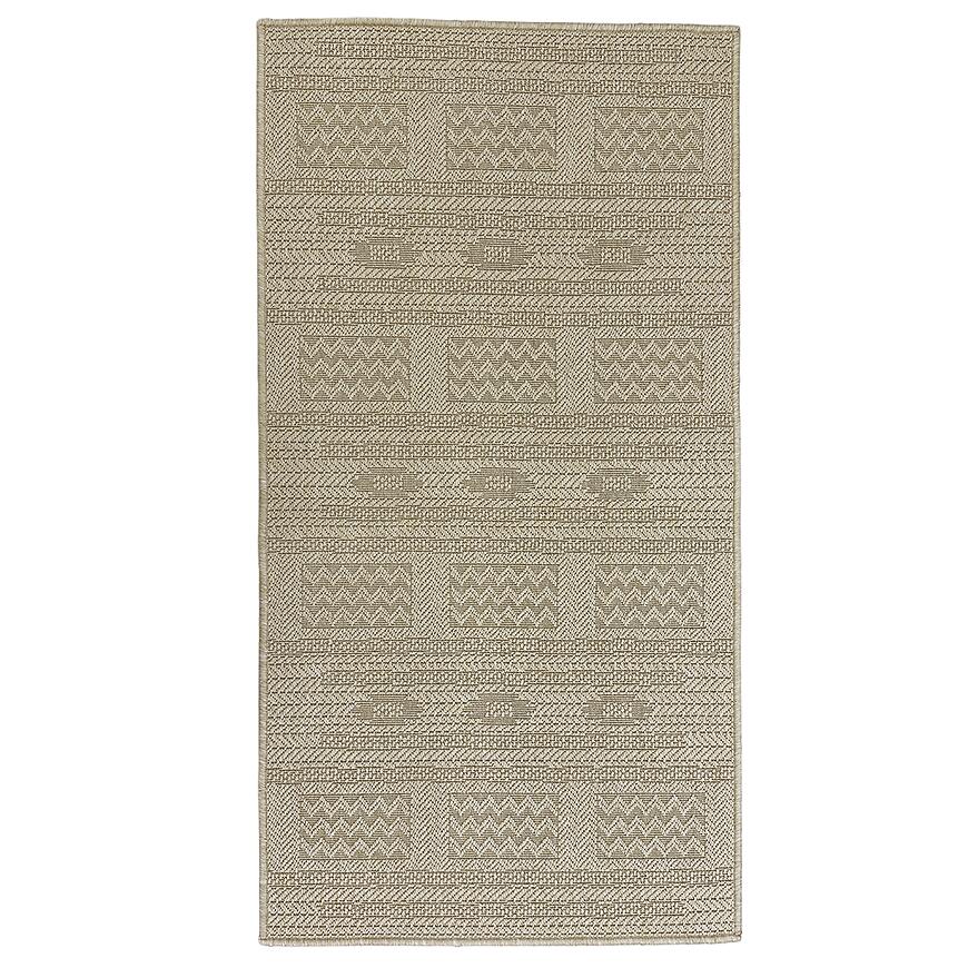 Dywan płaskotkany Olymp 80x150 cm beżowy – nowoczesny dywan geometryczny z polipropylenu. Antyalergiczny, do użytku wewnętrznego i zewnętrznego, przystosowany do ogrzewania podłogowego.