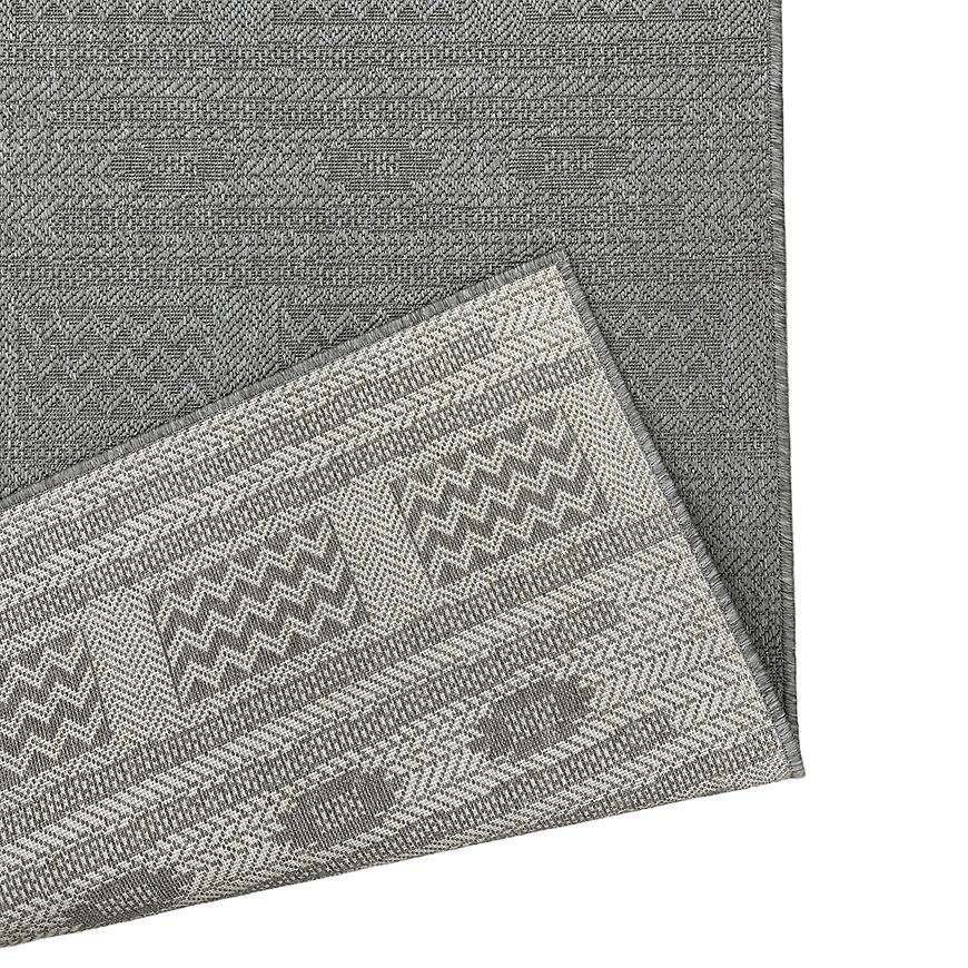 Dywan płaskotkany Olymp 120x170 cm szary – nowoczesny dywan geometryczny z polipropylenu. Antyalergiczny, na ogrzewanie podłogowe, do wnętrz i przestrzeni zewnętrznych.