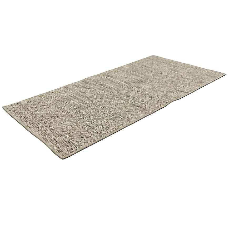 Dywan wykonano techniką maszynową z 100% polipropylenu. Płaskotkana struktura o wysokości włosa 1 mm ułatwia utrzymanie dywanu w czystości i zwiększa jego odporność na codzienne użytkowanie. Waga 1200 g/m² i całkowita waga 2,448 kg zapewniają stabilność i wygodę przenoszenia.