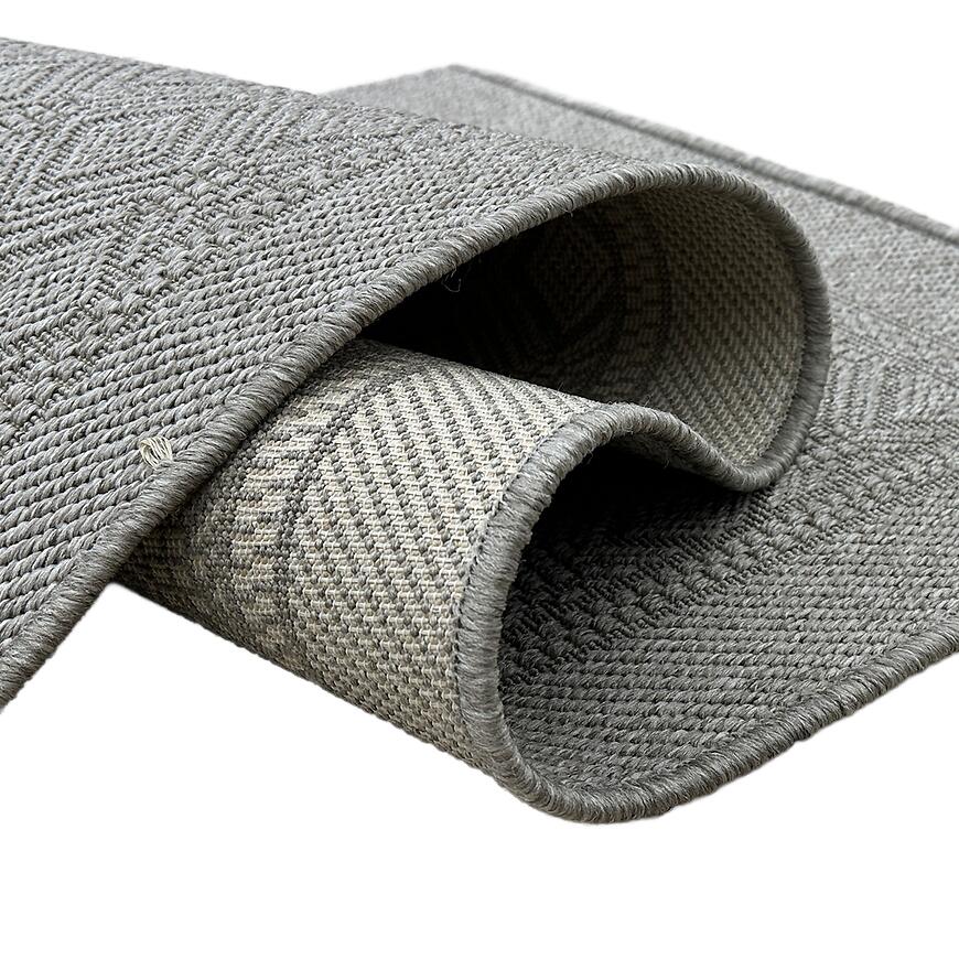 Model wykonano w 100% z polipropylenu, co zapewnia odporność na ścieranie i wilgoć. Dywan może być stosowany zarówno wewnątrz, jak i na zewnątrz. Maszynowy sposób tkania gwarantuje równomierną strukturę oraz trwałość. Gramatura wynosi 1200 g/m², a całkowita waga produktu to 4,416 kg.