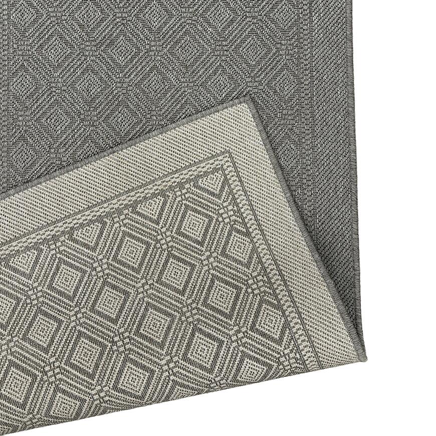 Dywan płaskotkany Olymp o wymiarach 160x230 cm łączy nowoczesny szary kolor z funkcjonalnym użytkowaniem. Geometryczny wzór nadaje wnętrzu uporządkowany i elegancki charakter. Niska wysokość włosa wynosząca 1 mm sprawia, że dywan jest łatwy w utrzymaniu czystości i wygodny w codziennym użytkowaniu.