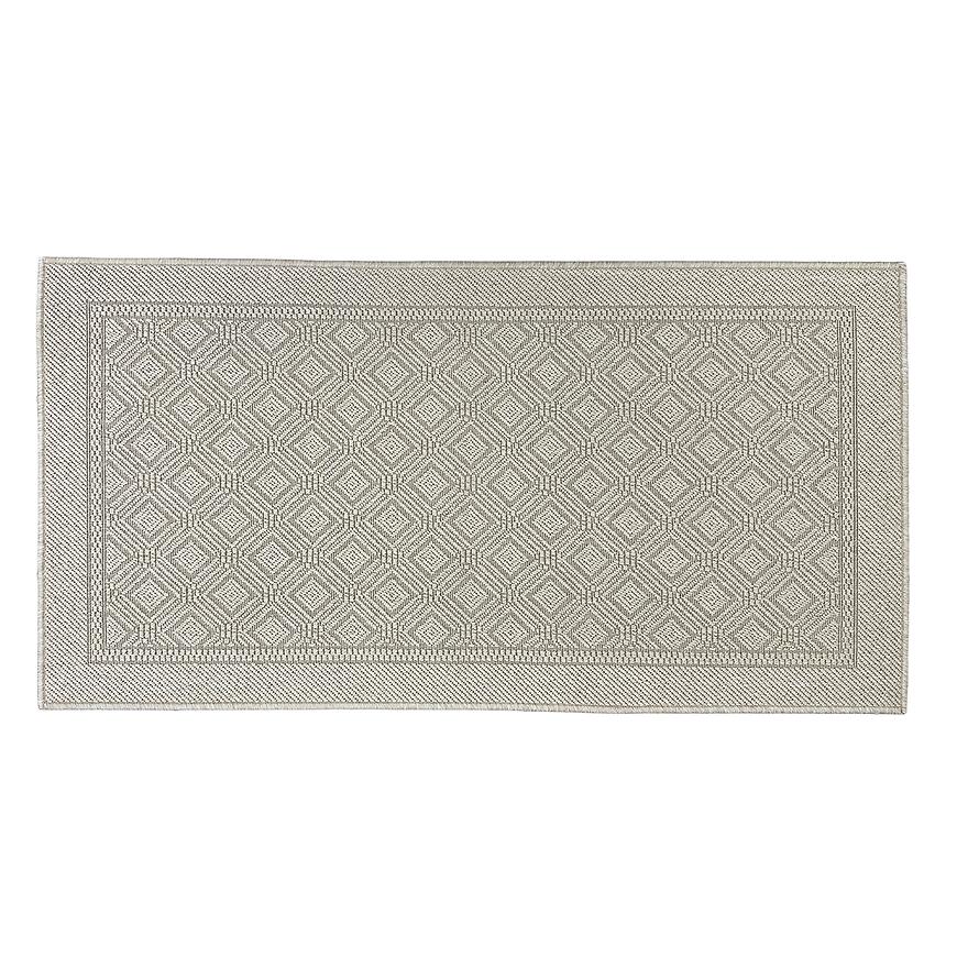 Model wykonano w 100% z polipropylenu, co zapewnia odporność na ścieranie i wilgoć. Dywan może być stosowany zarówno wewnątrz, jak i na zewnątrz. Maszynowy sposób tkania gwarantuje równomierną strukturę i trwałość. Gramatura wynosi 1200 g/m², a całkowita waga produktu to 4,416 kg.