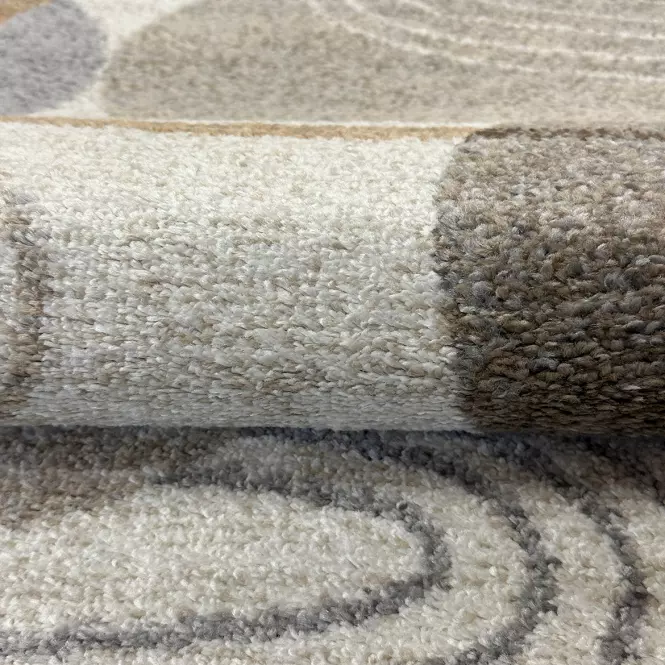 Geometryczny wzór dominujący nadaje mu unikalny charakter, wprowadzając do wnętrza oryginalność i nowoczesny akcent. Dzięki zastosowanej technologii HEATSET, dywan jest miękki w dotyku, a zarazem łatwy w utrzymaniu czystości. Jego maszynowy sposób tkania zapewnia precyzję wykonania i trwałość.