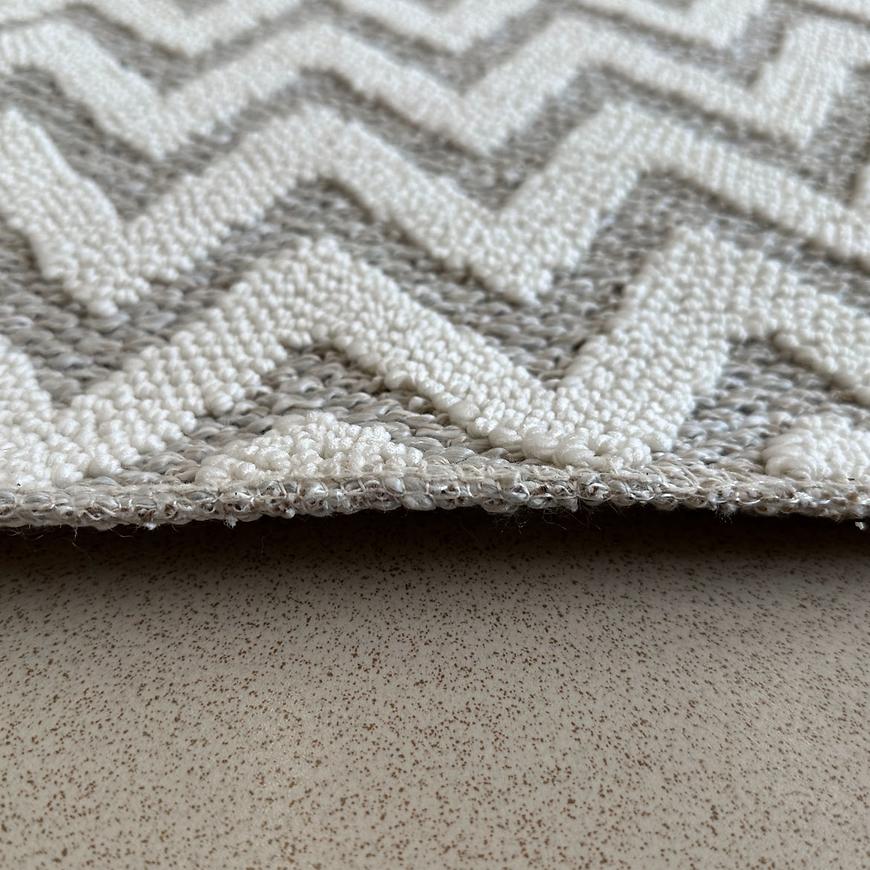 Abstrakcyjny wzór nadaje dywanowi nowoczesny charakter, co czyni go idealnym elementem do wnętrz utrzymanych w stylu nowoczesnym czy industrialnym. Neutralny kolor doskonale komponuje się z różnymi kolorami ścian i mebli, dodając wnętrzu subtelnego, ale wyraźnego akcentu.