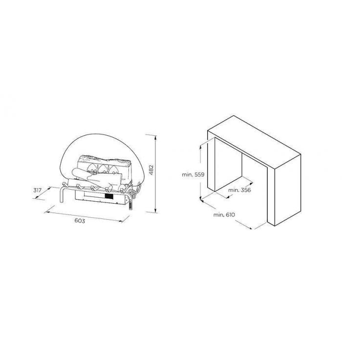 Dzięki wymiarom 60,3 × 31,7 × 48,2 cm, wkład Revillusion jest idealny do montażu w istniejącej obudowie kominkowej lub specjalnie przygotowanej wnęce. Niewielka waga 4,9 kg sprawia, że instalacja nie wymaga dodatkowej pomocy ani mocowania w ścianie.