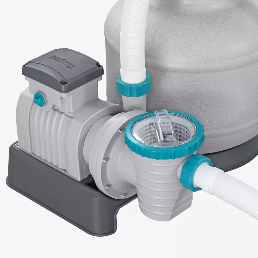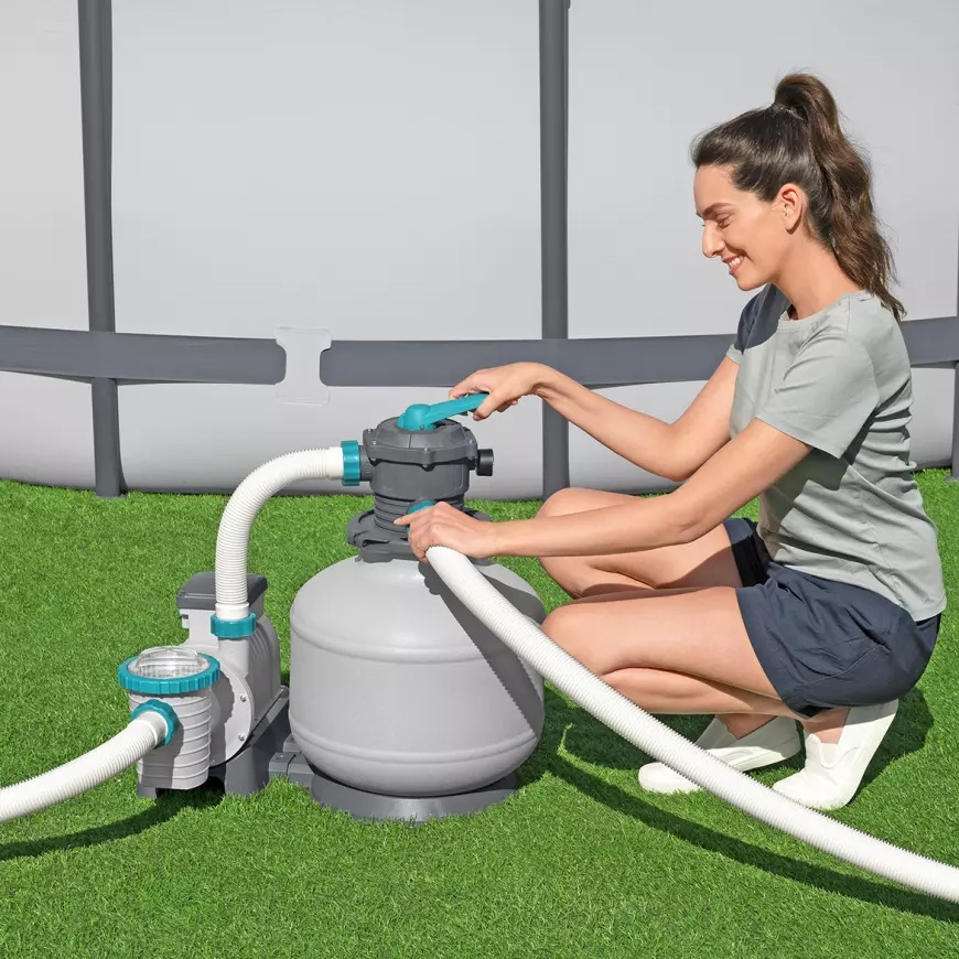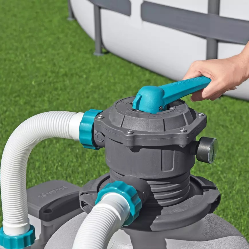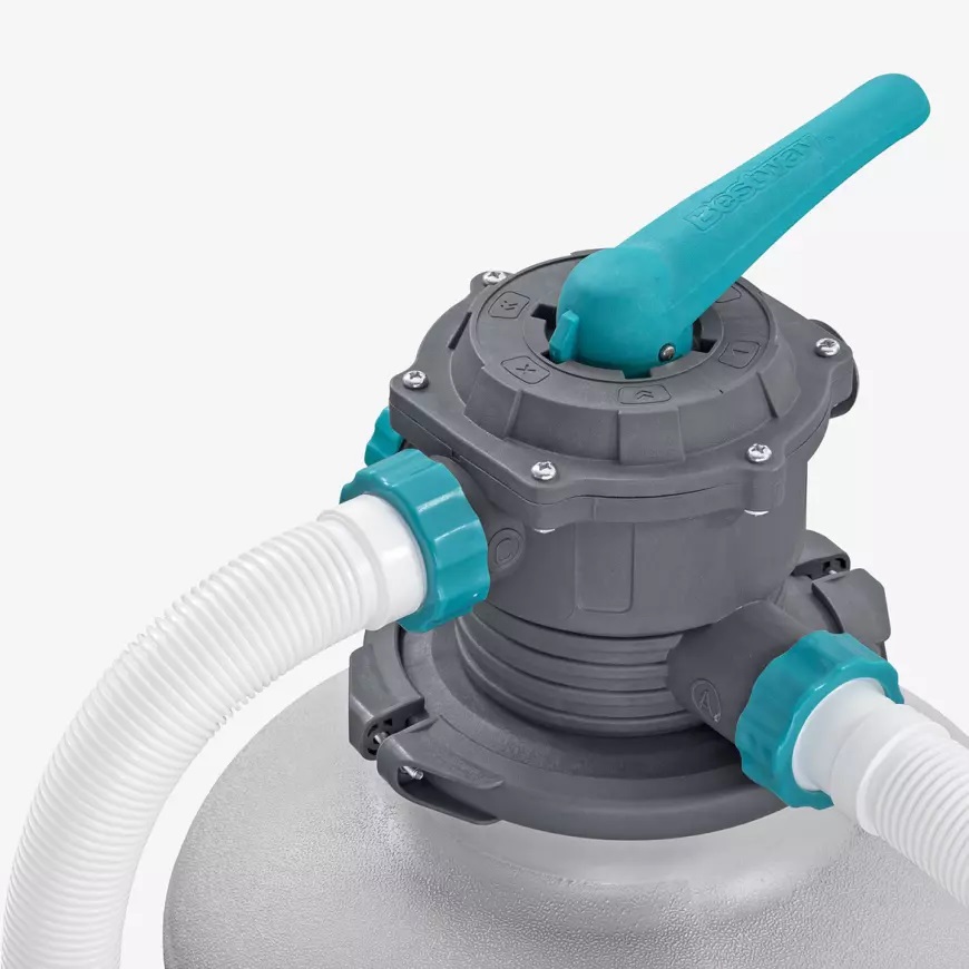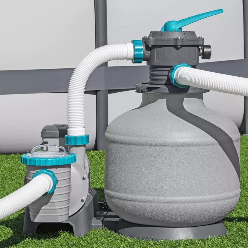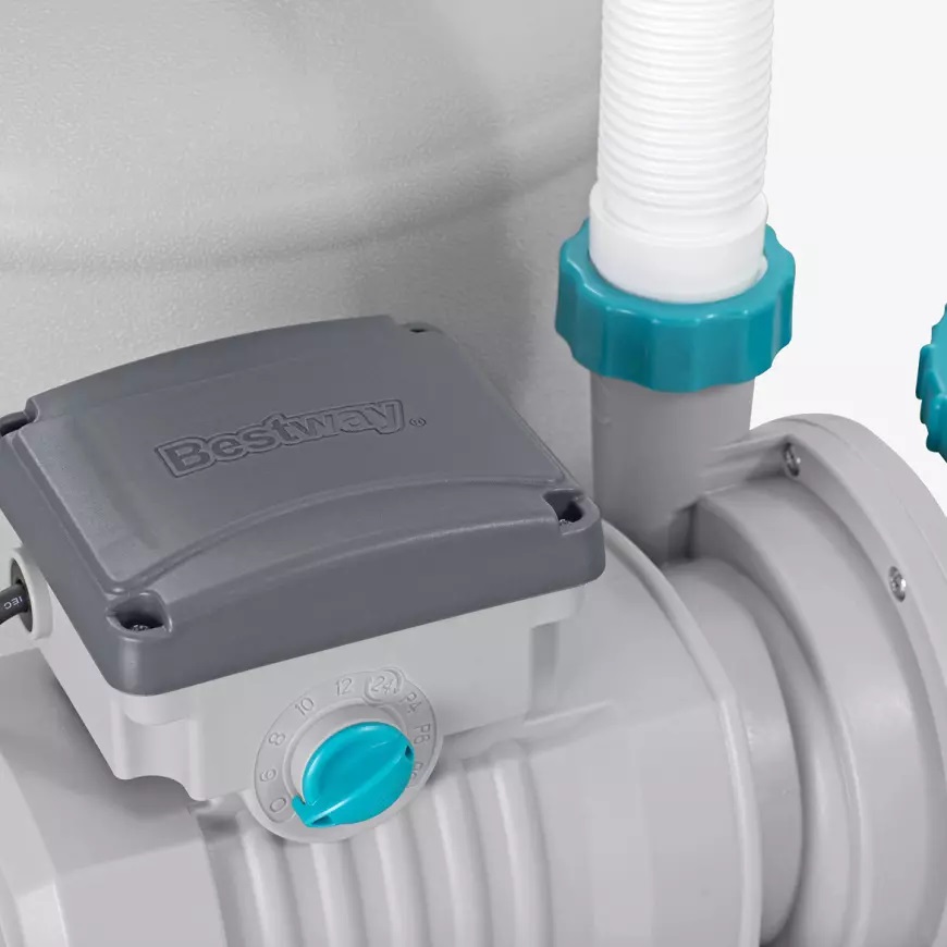 Pompa piaskowa Bestway Flowclear™ o wydajności systemowej 8,327 l/h to efektywne i przyjazne środowisku urządzenie, które zapewnia czystość wody w naziemnych basenach. Wykorzystując piasek kwarcowy jako medium filtracyjne, pompa eliminuje potrzebę częstych wymian wkładów, oferując oszczędność i wygodę – piasek wystarcza nawet na 3 lata!
