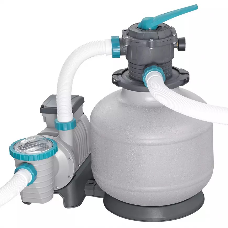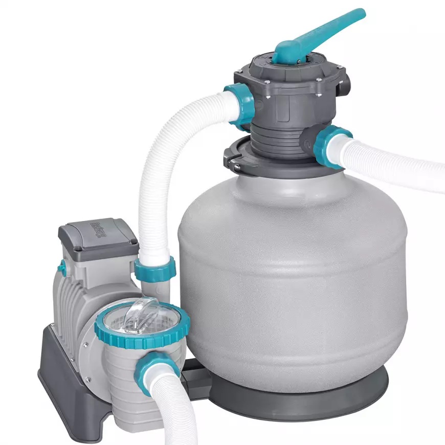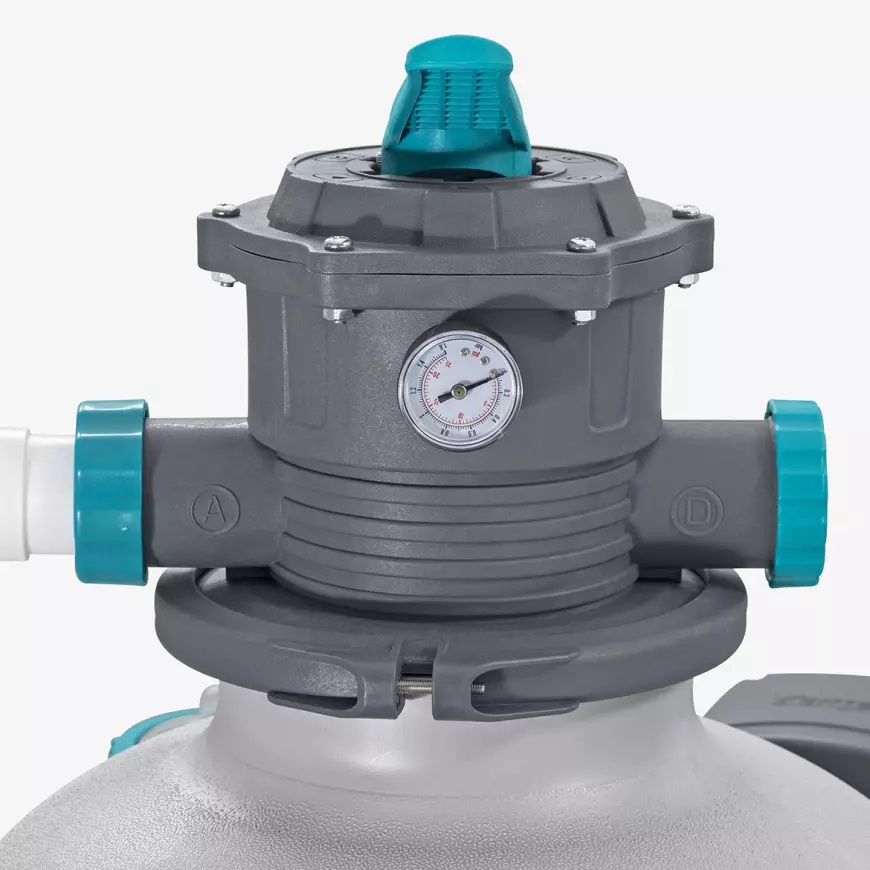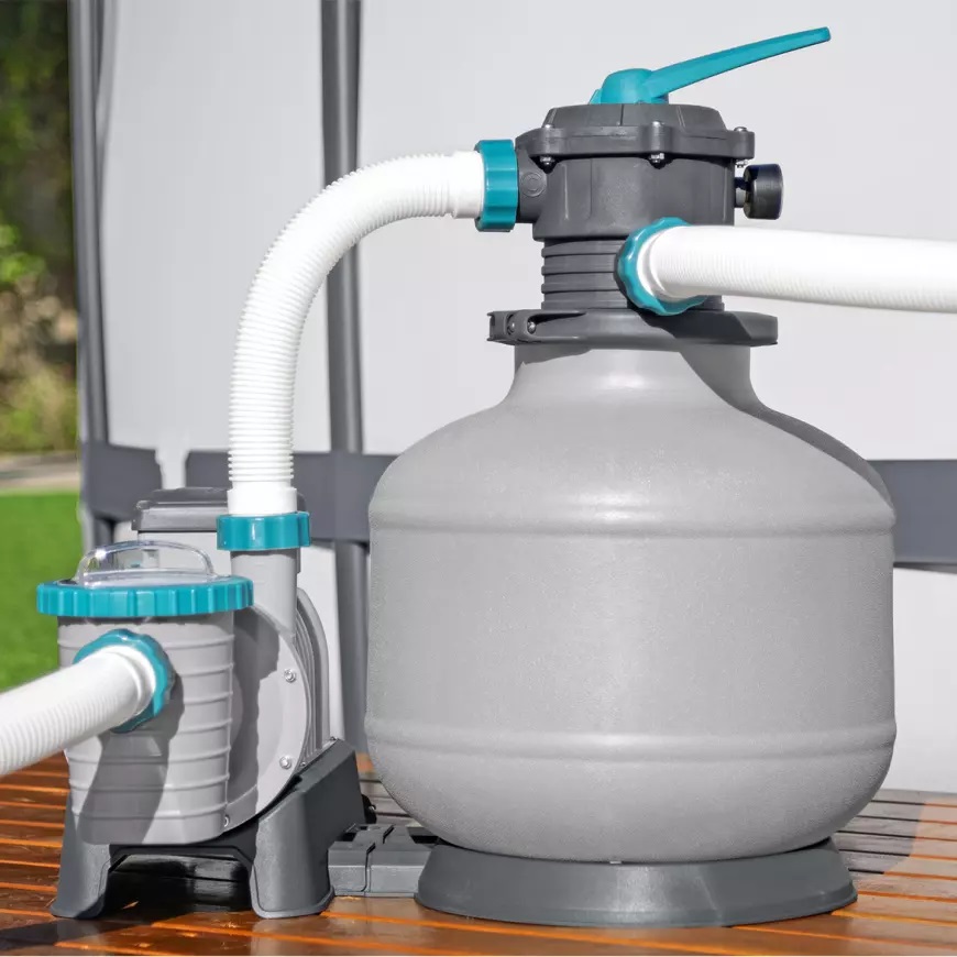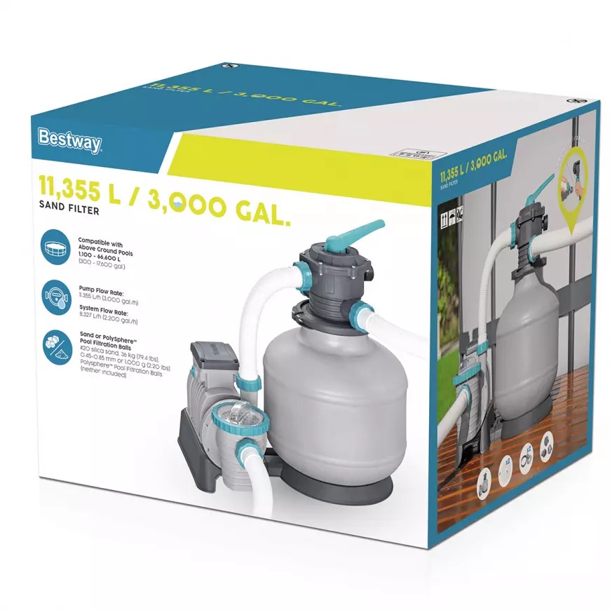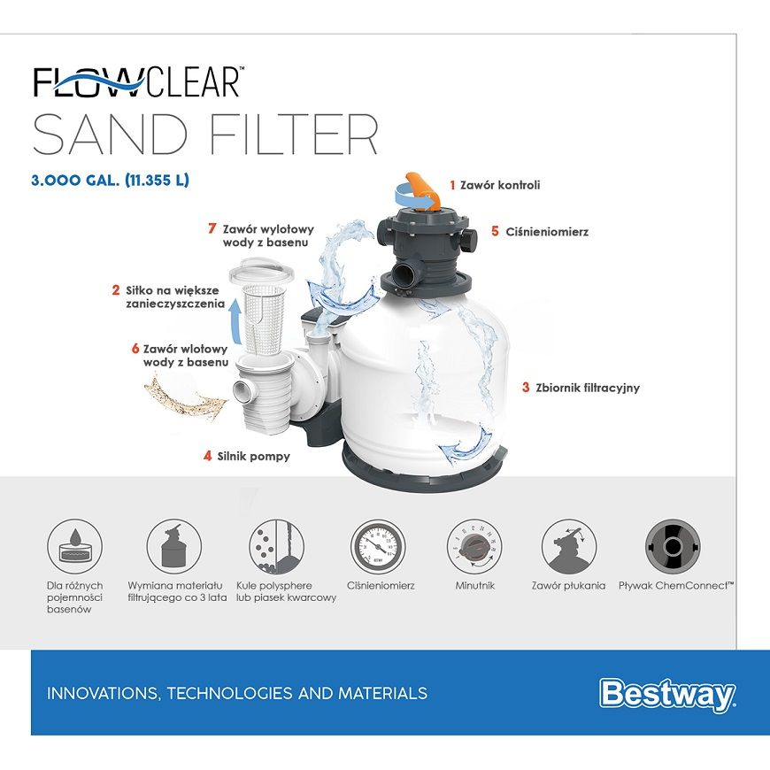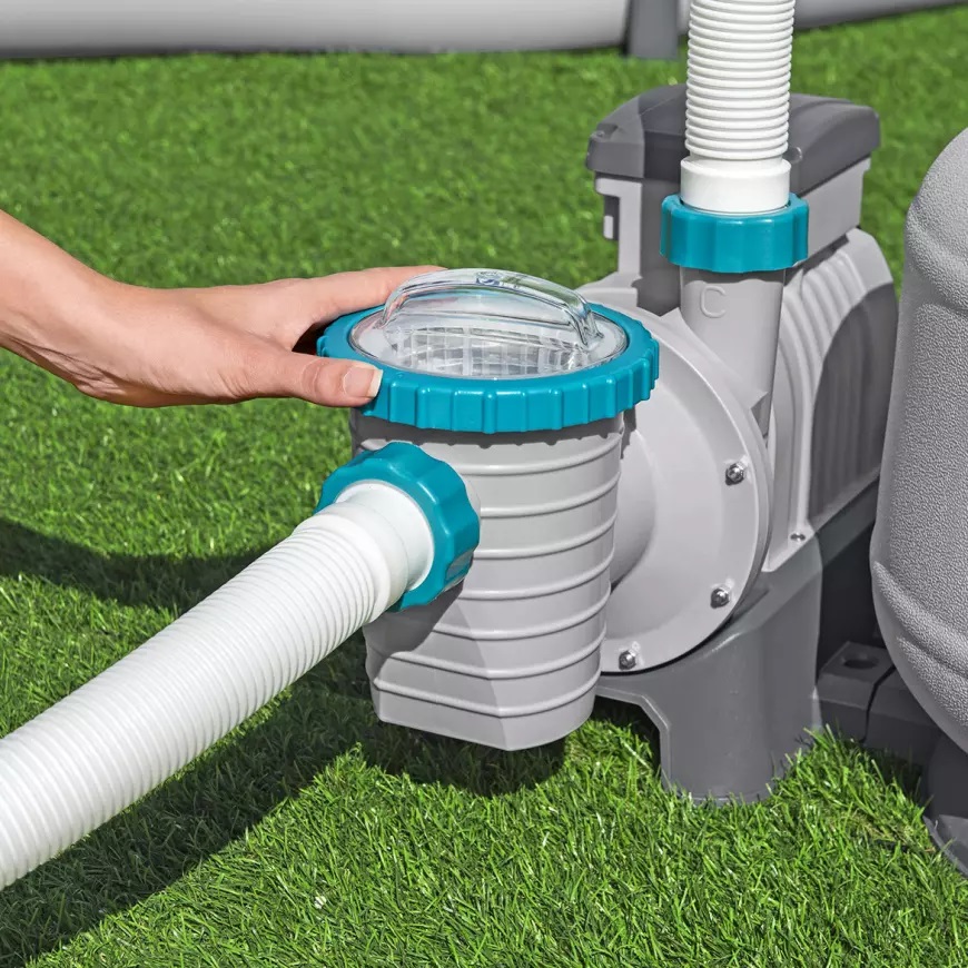 Pompa piaskowa Bestway Flowclear™ o wydajności systemowej 8,327 l/h to efektywne i przyjazne środowisku urządzenie, które zapewnia czystość wody w naziemnych basenach. Wykorzystując piasek kwarcowy jako medium filtracyjne, pompa eliminuje potrzebę częstych wymian wkładów, oferując oszczędność i wygodę – piasek wystarcza nawet na 3 lata!