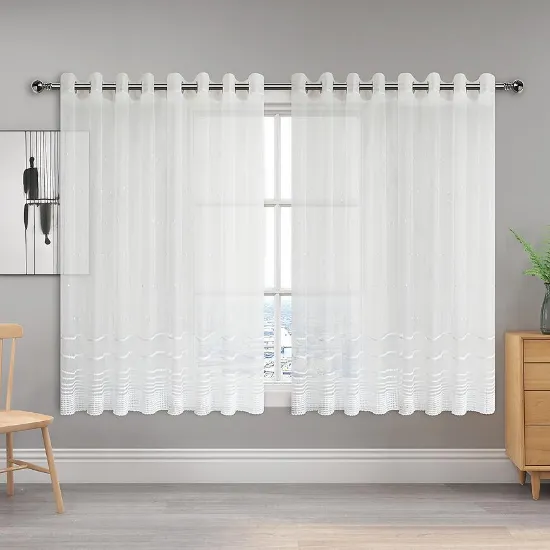 Firana JULIA w kolorze białym to propozycja dla osób ceniących subtelne i nowoczesne wykończenia wnętrz. Wykonana z wysokiej jakości woalu, delikatnie przepuszcza światło, nadając pomieszczeniu przyjemny, naturalny blask. Jej geometryczny wzór dodaje wnętrzu harmonii, a jednocześnie wprowadza elegancki, minimalistyczny akcent.