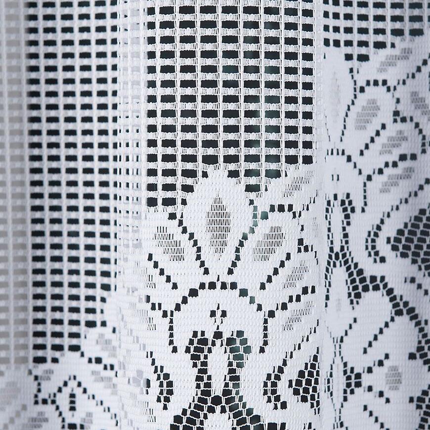 Żakardowa struktura materiału zapewnia delikatne przepuszczanie światła, dzięki czemu wnętrze pozostaje jasne i przytulne. Firana dekoruje okno, nadając mu lekkość i subtelną elegancję bez ograniczania naturalnego światła.