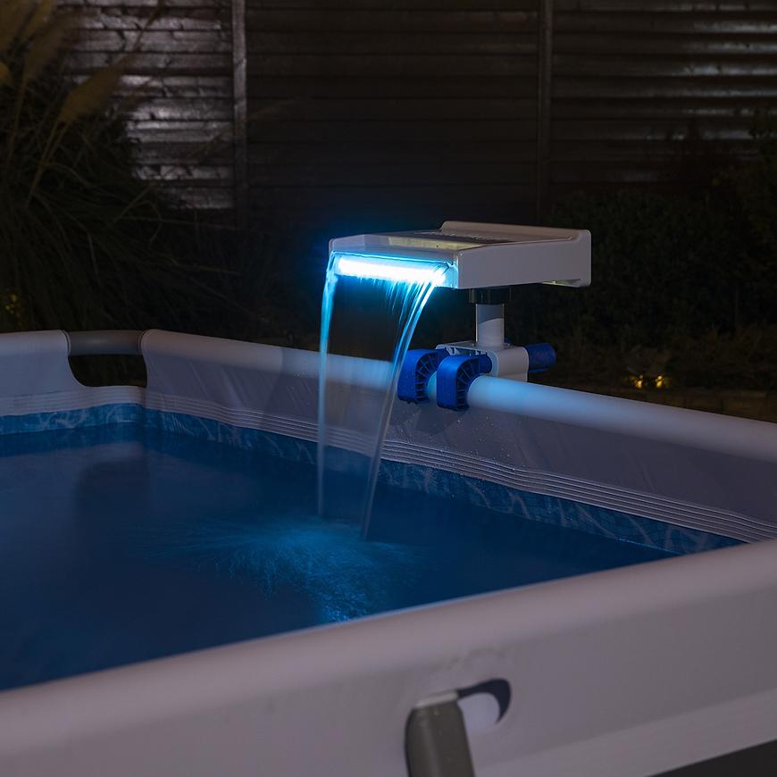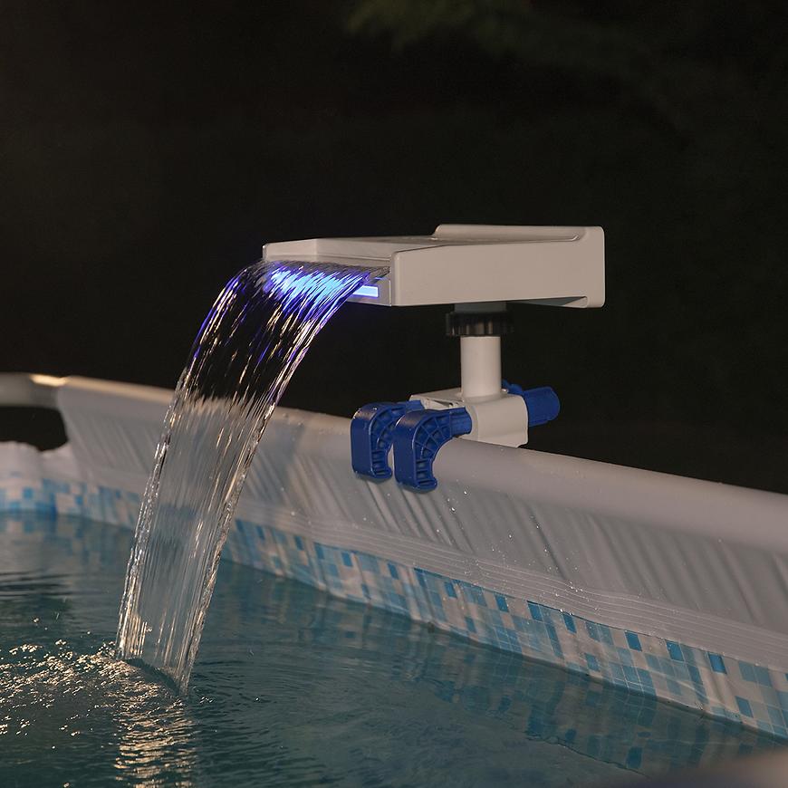 Zaawansowana technologia LED w wodospadzie umożliwia korzystanie z 7-kolorowej lampy LED, która obejmuje 8 różnych trybów, w tym 7 stałych i 1 tryb naprzemienny. Ten efektowny pokaz świateł tworzy atmosferę spokojnego relaksu, idealną do korzystania z basenu w godzinach wieczornych.