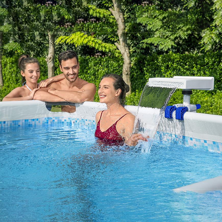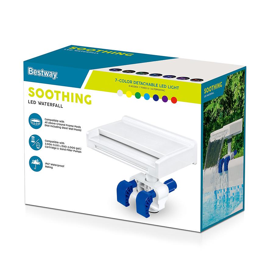Podnieś poziom relaksu w swoim basenie naziemnym dzięki ukojeniu, jakie przyniesie wodospad LED Bestway® Soothing. Ta innowacyjna fontanna jest kompatybilna ze wszystkimi basenami naziemnymi, z wyjątkiem tych z metalowymi ścianami, wyposażonymi w pompy filtrujące z wkładem nabojowym i piaskowym o wydajności od 2,006 do 11,335 litrów (530-3,000 gal.).