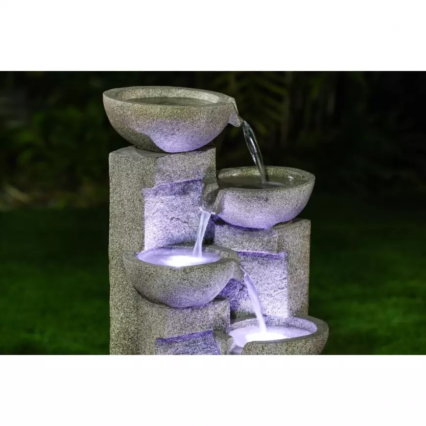 Jednym z kluczowych atutów tej fontanny jest zamknięty obieg wody, który nie tylko minimalizuje jej zużycie, ale również zapewnia cichą i niezakłóconą pracę. Wbudowane oświetlenie LED dodaje uroku, tworząc nastrojową atmosferę zarówno w dzień, jak i w nocy. Dzięki temu, fontanna staje się nie tylko źródłem kojącego dźwięku płynącej wody, ale również atrakcyjnym punktem świetlnym w Twoim ogrodzie czy wnętrzu.