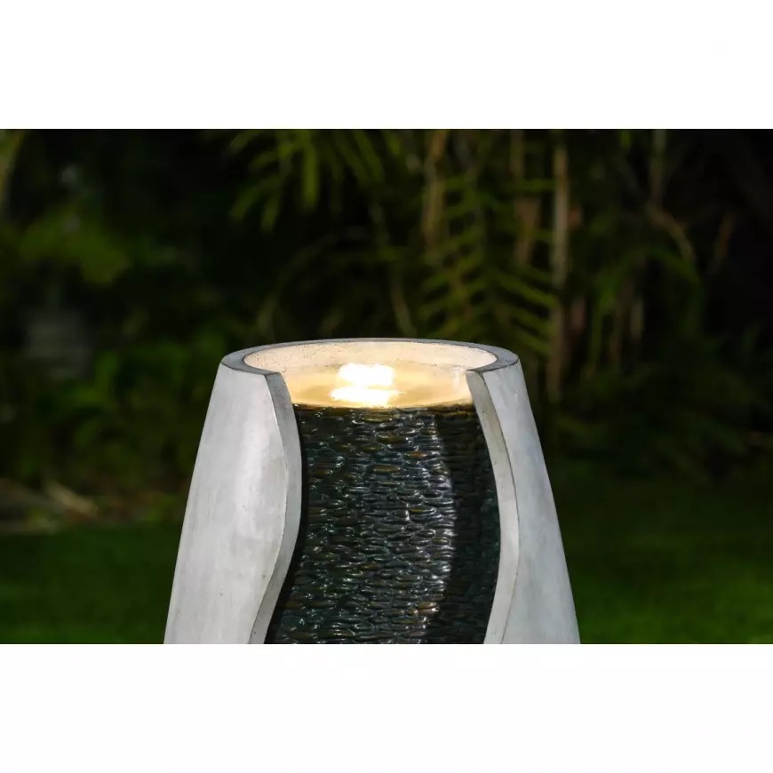 Jej zamknięty obieg wody to rozwiązanie, które minimalizuje zużycie wody, jednocześnie zapewniając nieprzerwaną i cichą pracę fontanny. Ten model wyposażony jest także w subtelne oświetlenie LED, które dodaje uroku i tworzy nastrojową atmosferę, zarówno w ciągu dnia, jak i po zmroku. Światło delikatnie podkreśla kaskadowy przepływ wody, wprowadzając spokojny i relaksujący klimat w każdym otoczeniu.