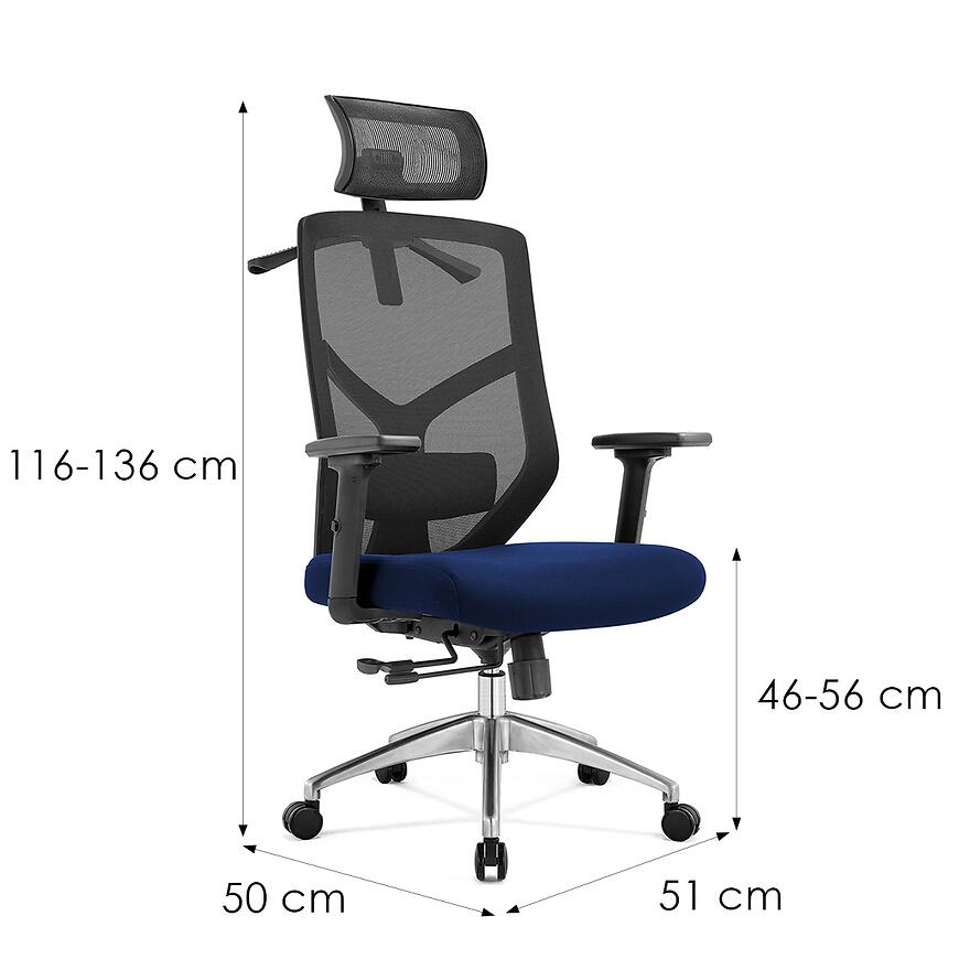 Fotel Biurowy Angel Rosa Granatowa to ergonomiczny i funkcjonalny fotel, który łączy komfort, trwałość i nowoczesny design. Wyposażony w regulowane podłokietniki, zagłówek oraz mechanizm regulacji oparcia, pozwala dopasować pozycję do indywidualnych potrzeb użytkownika. Siedzisko wypełnione pianką zapewnia wygodę nawet podczas długiego siedzenia, a solidna metalowa konstrukcja gwarantuje stabilność i bezpieczeństwo. Fotel oferuje regulację wysokości siedziska od 46 do 56 cm oraz maksymalne obciążenie 150 kg, co podkreśla jego wytrzymałość. Granatowa tapicerka nadaje mu elegancki i nowoczesny wygląd, łącząc styl z funkcjonalnością.