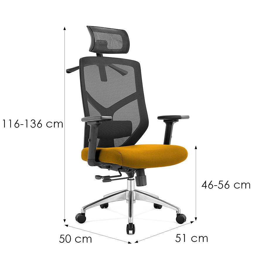 Fotel Biurowy Angel Rosa Musztardowa to ergonomiczny i stylowy fotel, który łączy komfort, funkcjonalność i nowoczesny design. Wyposażony w regulowane podłokietniki, zagłówek oraz mechanizm regulacji oparcia, umożliwia idealne dopasowanie pozycji do indywidualnych potrzeb użytkownika. Siedzisko wypełnione pianką gwarantuje wygodę nawet podczas długiego siedzenia, a solidna metalowa konstrukcja zapewnia stabilność i bezpieczeństwo. Fotel oferuje regulację wysokości siedziska od 46 do 56 cm oraz maksymalne obciążenie 150 kg, co podkreśla jego wytrzymałość. Musztardowa tapicerka nadaje mu energetyczny i nowoczesny wygląd, łącząc estetykę z funkcjonalnością.