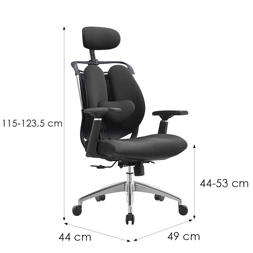 Fotel Biurowy Angel Stelio Czarny to ergonomiczny i nowoczesny fotel, który łączy komfort, funkcjonalność i trwałość. Wyposażony w regulowane podłokietniki, zagłówek oraz mechanizm regulacji oparcia, pozwala dopasować pozycję do indywidualnych potrzeb użytkownika. Siedzisko wypełnione pianką zapewnia wygodę podczas długotrwałego siedzenia, a stabilna konstrukcja z tkaniny i metalu gwarantuje bezpieczeństwo i solidność. Fotel oferuje regulację wysokości siedziska od 44 do 53 cm oraz maksymalne obciążenie 150 kg, co podkreśla jego wytrzymałość. Czarna tapicerka nadaje mu elegancki i nowoczesny wygląd, łącząc styl z praktycznością.