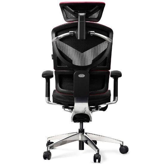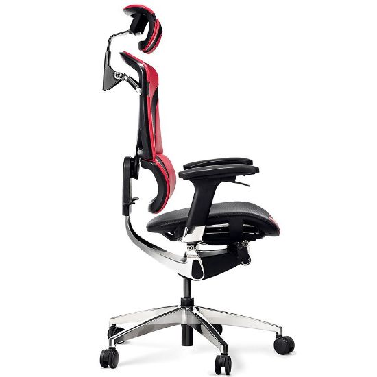 Z szerokością i głębokością wynoszącą 68 cm, fotel zapewnia odpowiednie wsparcie dla użytkownika, jednocześnie pozostając kompaktowym i ergonomicznym rozwiązaniem. Siedzisko wykonane z siatki, razem z plastikowym materiałem oraz ekoskórą w kolorze karmazynowym, tworzy lekką i przewiewną konstrukcję, co sprzyja wygodzie i komfortowi podczas długotrwałego siedzenia.