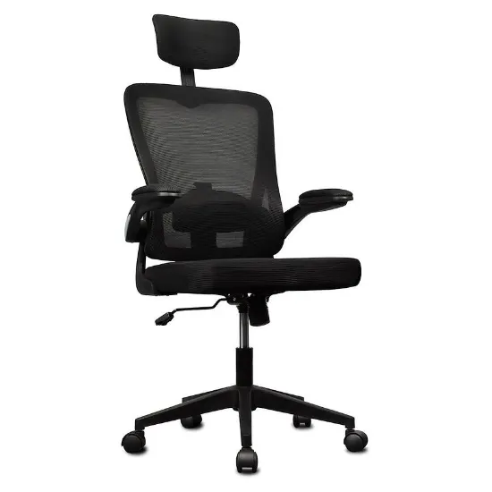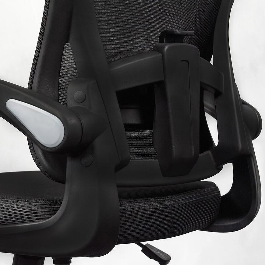 Model został wyposażony w składane podłokietniki, co jest praktycznym rozwiązaniem w mniejszych przestrzeniach biurowych i domowych. Składane podłokietniki umożliwiają wsunięcie fotela pod biurko, gdy nie jest używany, pomagając zachować porządek i ergonomię stanowiska pracy. To funkcjonalny element, który docenią użytkownicy ceniący elastyczność i wygodę w codziennym użytkowaniu krzesła obrotowego.