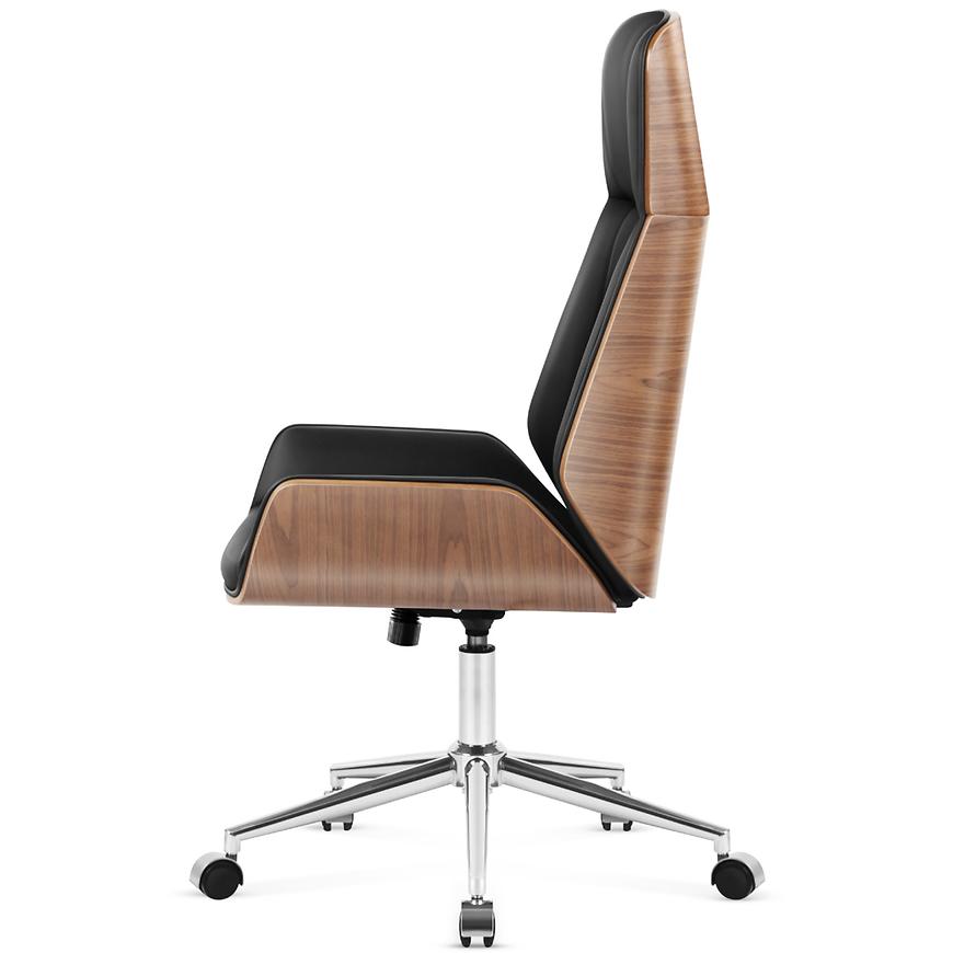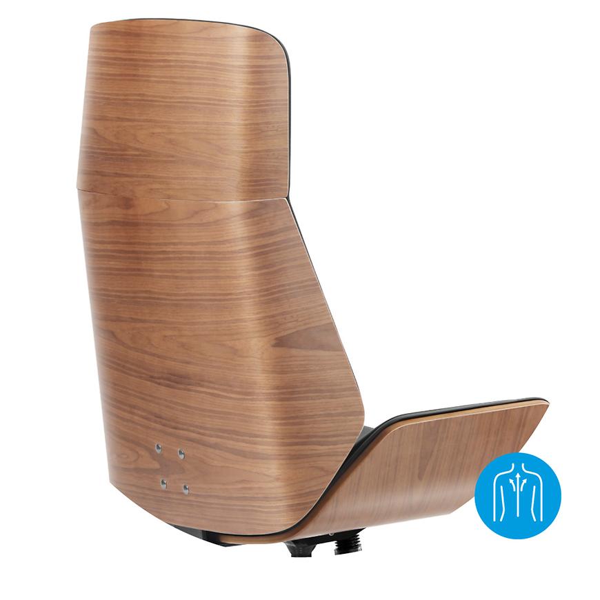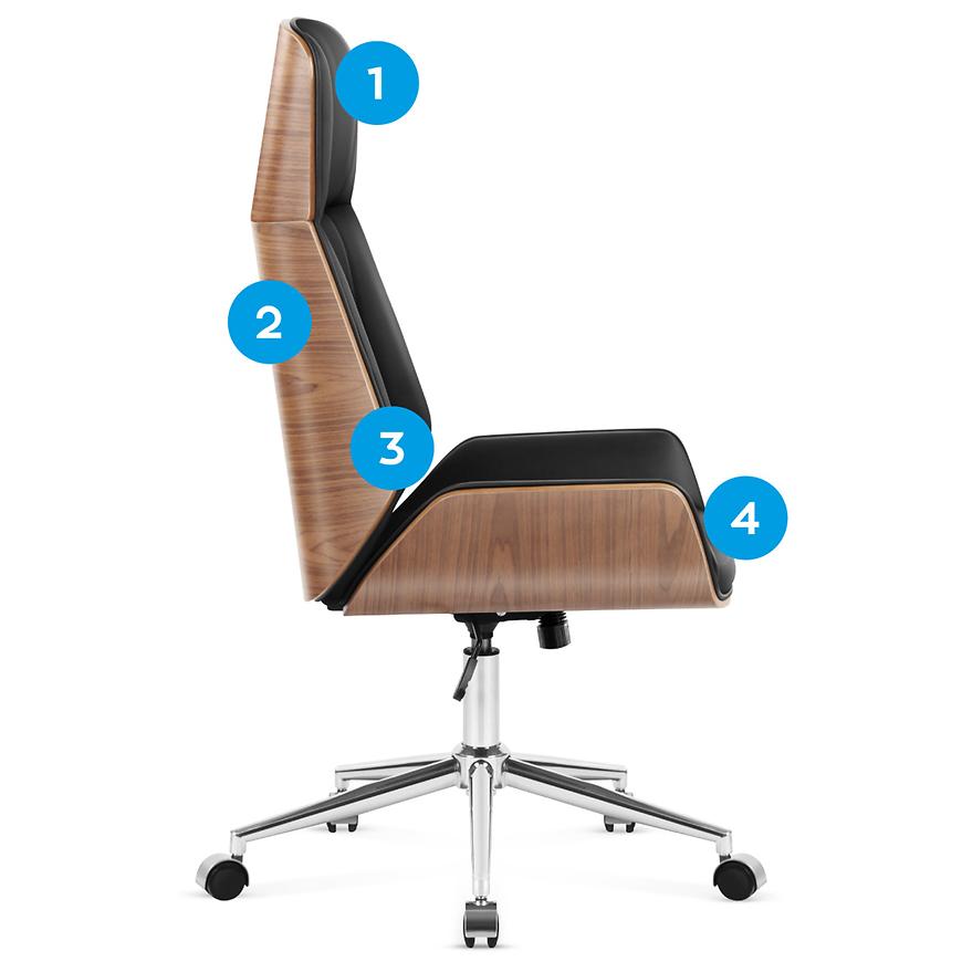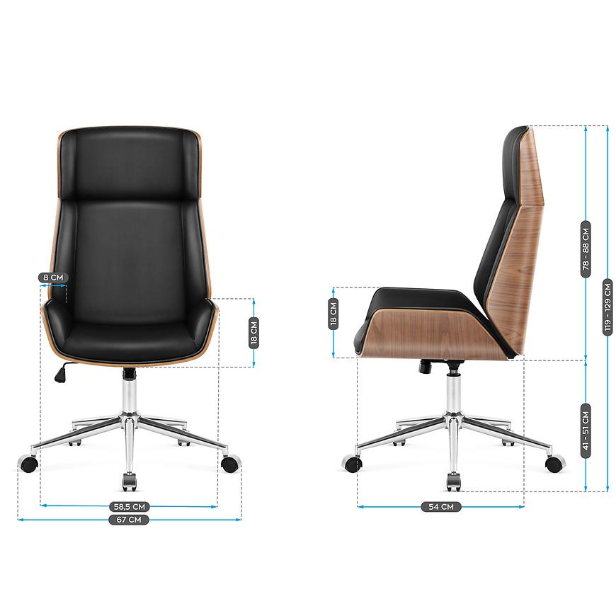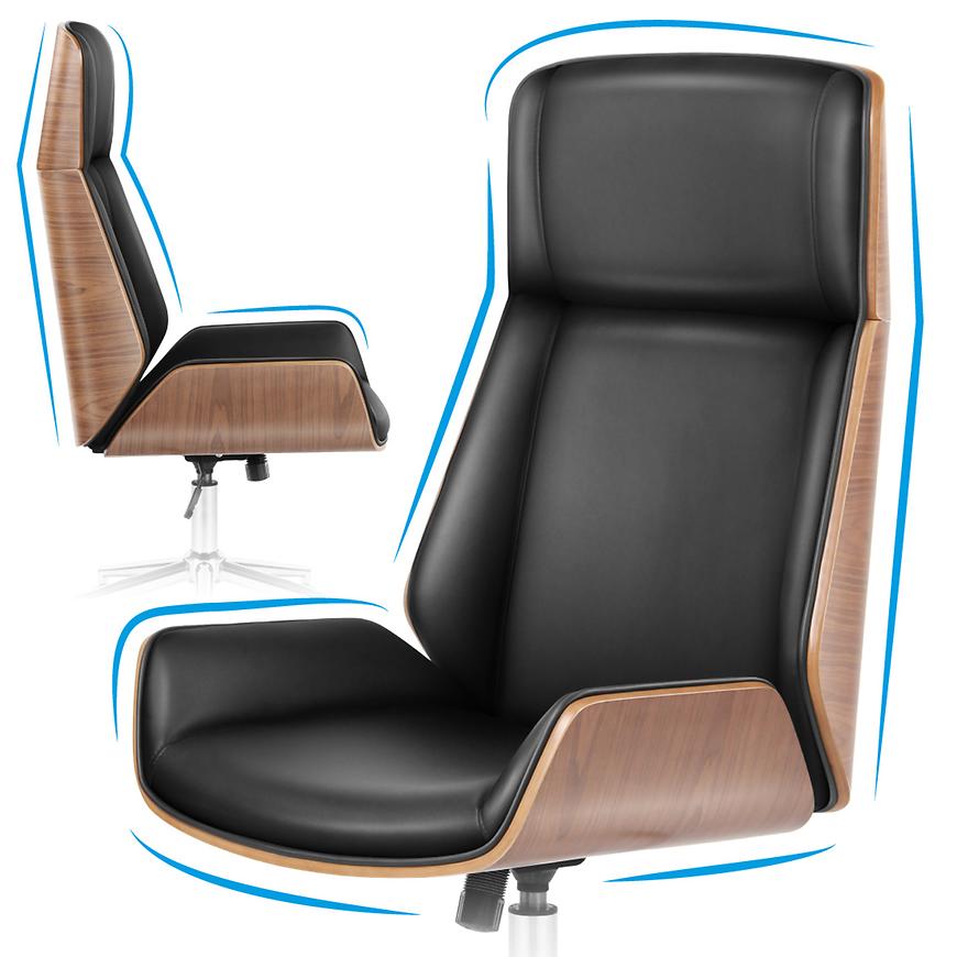 Jego konstrukcja opiera się na wysokiej jakości materiałach, które zapewniają nie tylko estetyczny wygląd, ale również trwałość i komfort użytkowania. Fotel wykonany jest z połączenia wysokiej jakości ekoskóry, forniru oraz metalu, co tworzy harmonijną kombinację materiałów.