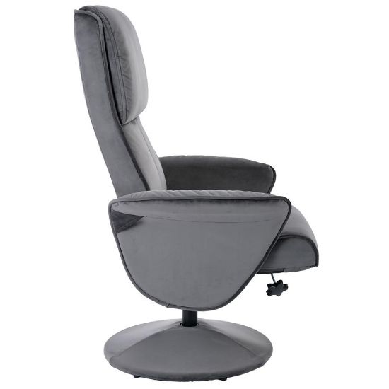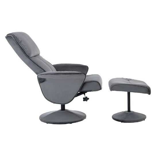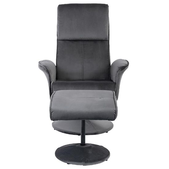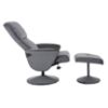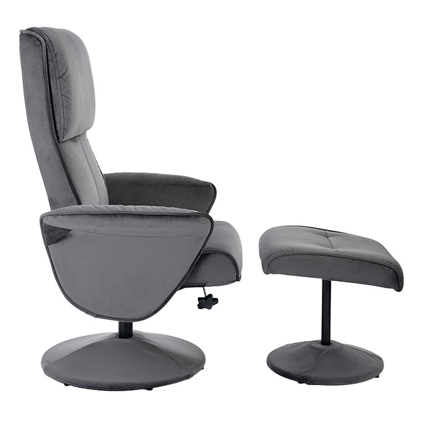Nogi fotela, również w szarym kolorze, dodają stabilności i elegancji całej konstrukcji. Fotel wymaga złożenia, co ułatwia jego transport i montaż. Dodatkowo, w zestawie znajduje się pufa, która doskonale komponuje się z fotelem, tworząc kompletny zestaw do relaksu i wypoczynku.