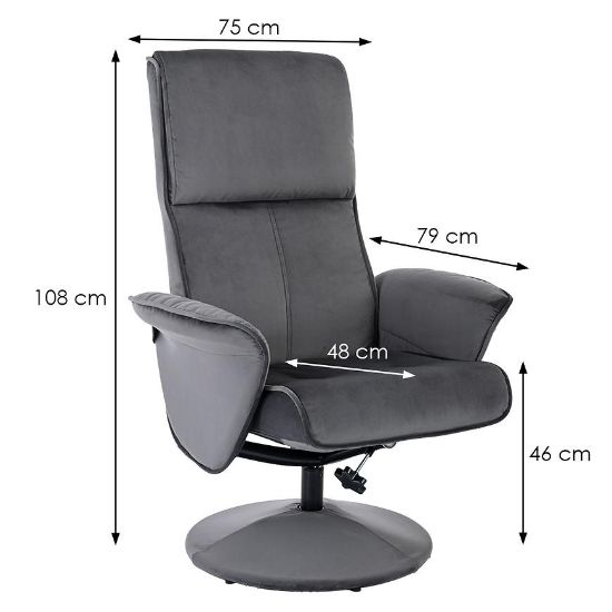 Fotel Bonito z podnóżkiem to elegancki i wygodny wybór do każdego wnętrza. Jego wysokość wynosi 108 cm, szerokość 75 cm i głębokość 79 cm, zapewniając wystarczająco dużo miejsca do relaksu. Wysokość siedziska wynosi 46 cm, a głębokość siedziska to 48 cm, co gwarantuje komfortowe użytkowanie. Tapicerka wykonana z szarej tkaniny jest nie tylko trwała, ale także nadaje fotelowi nowoczesny wygląd. Fotel wypełniony jest pianką, co zapewnia odpowiednie wsparcie dla ciała podczas odpoczynku.