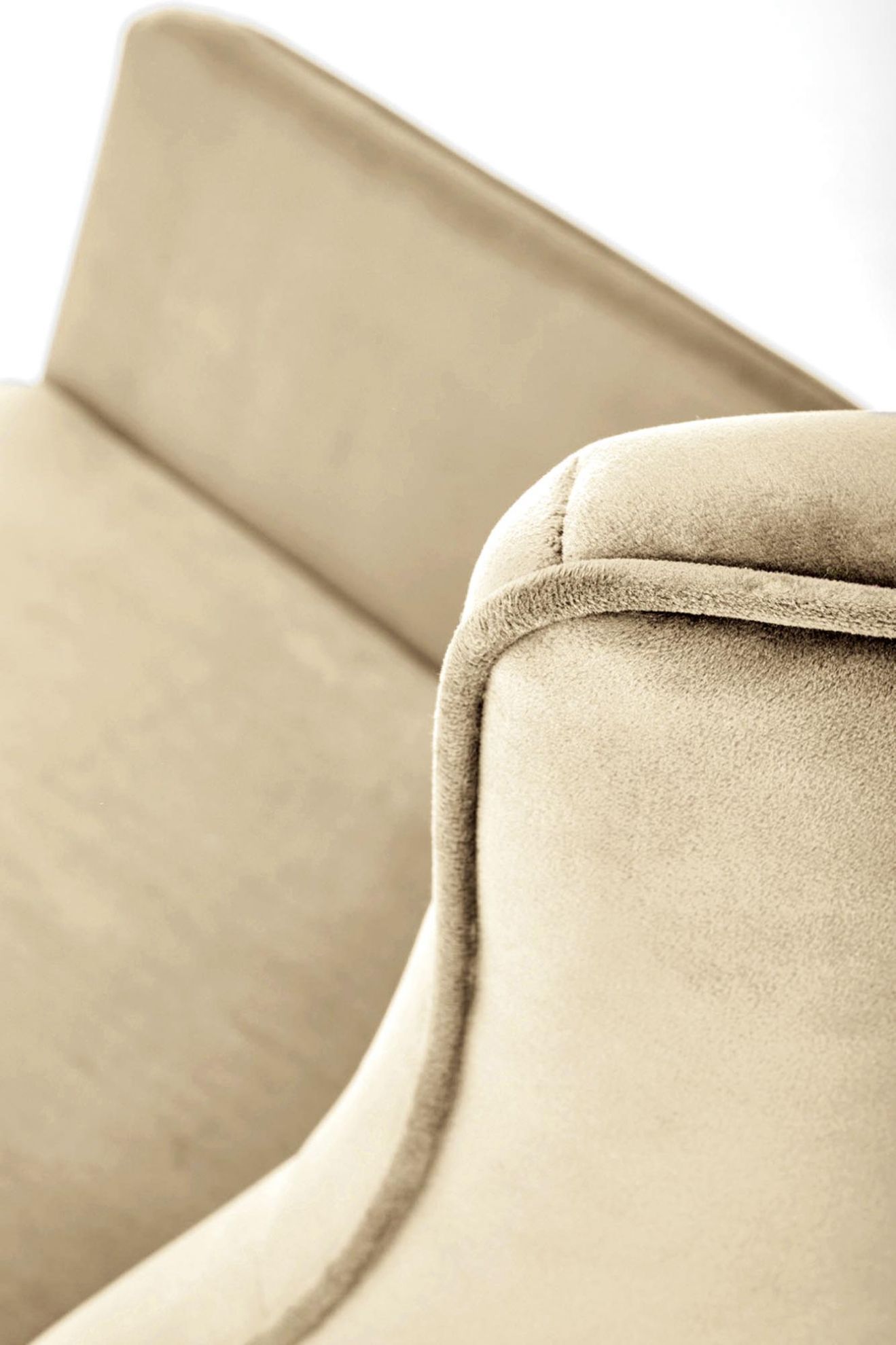 Fotel bujany Marlon wyróżnia się wyjątkową tkaniną - velvet, która nadaje mu luksusowego i miękkiego w dotyku charakteru. Kolor beżowy dodaje fotelowi subtelności i elegancji, co czyni go uniwersalnym dodatkiem do różnych aranżacji wnętrz. Solidna stal malowana proszkowo i drewno lite użyte w konstrukcji nóg gwarantuje trwałość i stabilność.