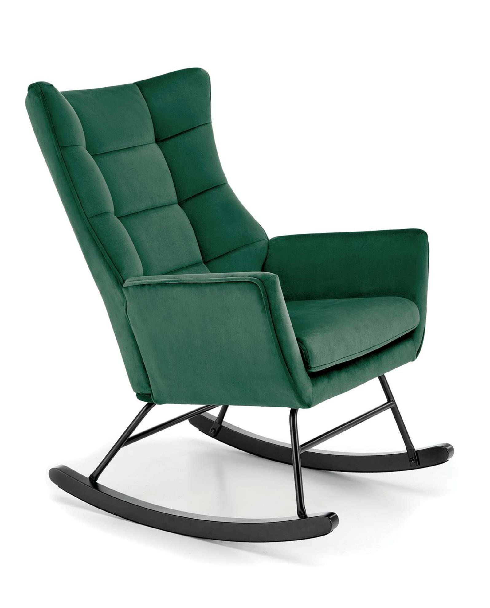 Fotel bujany Marlon wyróżnia się wyjątkową tkaniną - velvet, która nadaje mu luksusowego i miękkiego w dotyku charakteru. Kolor ciemny zielony dodaje fotelowi subtelności i elegancji, co czyni go uniwersalnym dodatkiem do różnych aranżacji wnętrz. Solidna stal malowana proszkowo i drewno lite użyte w konstrukcji nóg gwarantuje trwałość i stabilność.