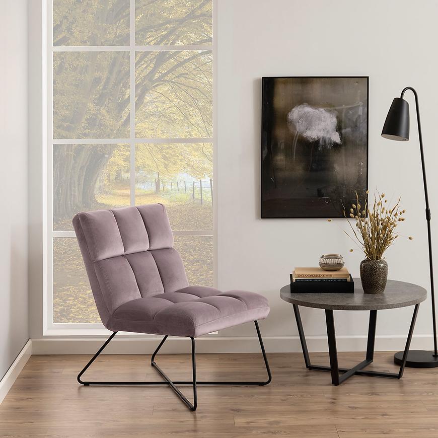 Fotel Crate wyróżnia się subtelnością barw, które doskonale komponuje się z czarnym stelażem, tworząc harmonijną całość. Różowy kolor siedziska oraz tapicerki nadają mu elegancki, nowoczesny charakter, który łatwo dostosować do różnych aranżacji.