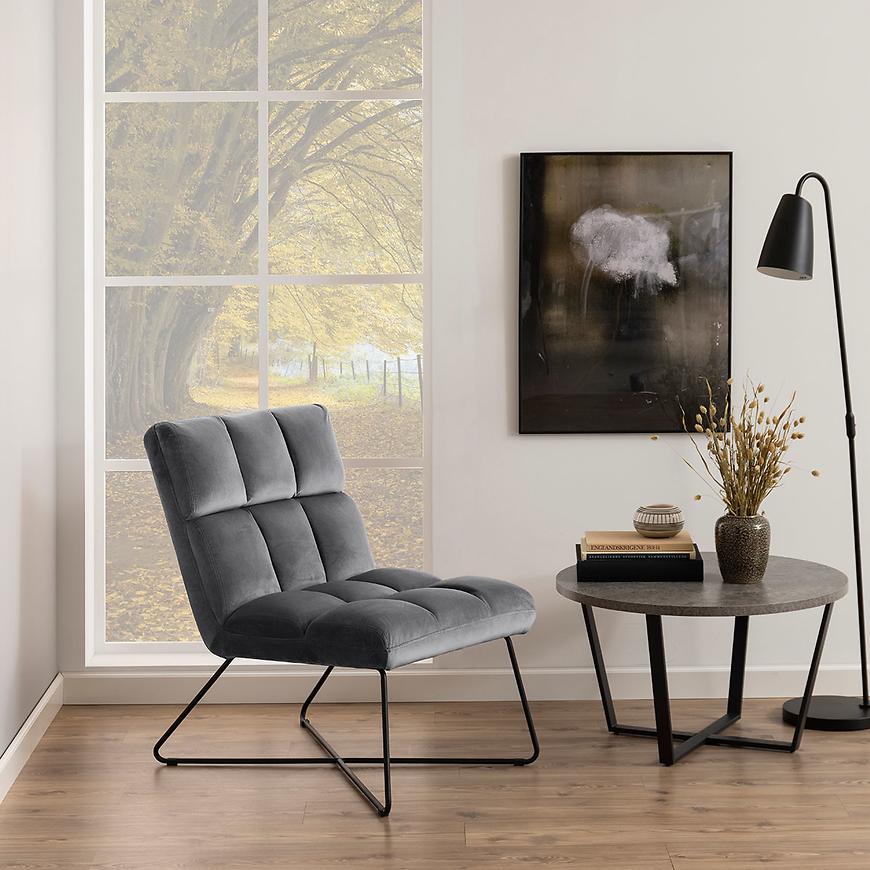 Fotel Crate wyróżnia się subtelnością barw, które doskonale komponuje się z czarnym stelażem, tworząc harmonijną całość. Szary kolor siedziska oraz tapicerki nadają mu elegancki, nowoczesny charakter, który łatwo dostosować do różnych aranżacji.
