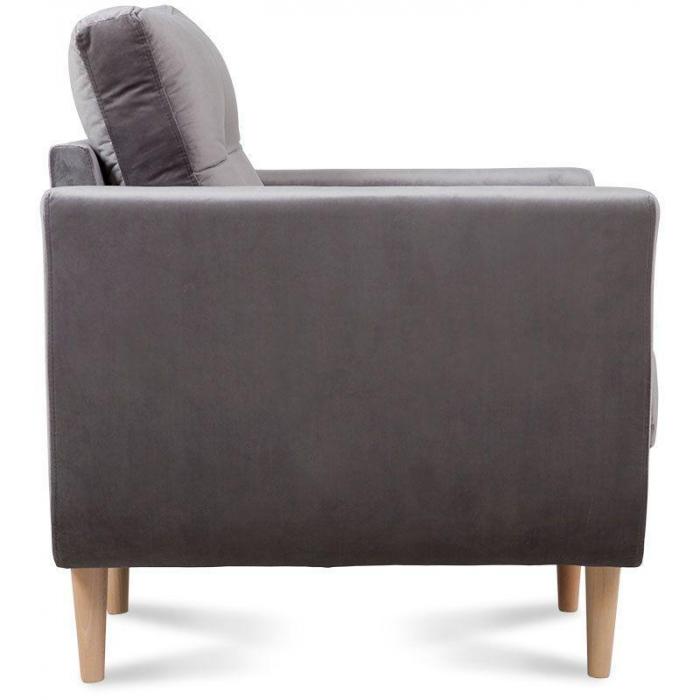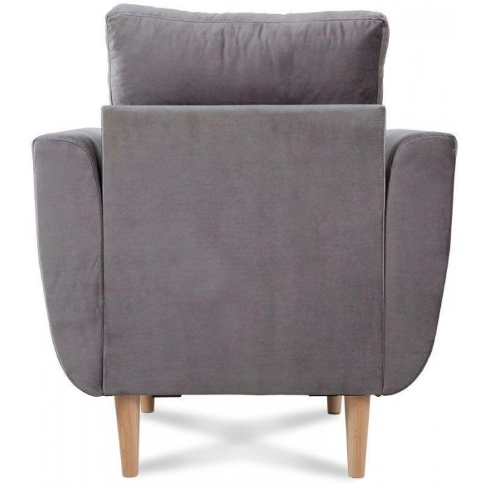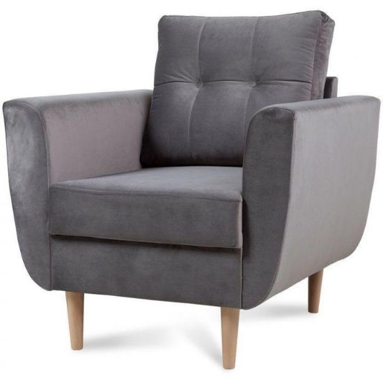 Fotel Diora w stylu retro to ponadczasowy model, który stanowi doskonały przykład połączenia klasyki z nowoczesnością. Prostota formy oraz estetyczna prezencja wprowadzą do pomieszczenia łagodność i przytulność zarazem. Wysokie, wykonane z jasnego drewna nóżki zapewniają stabilność konstrukcji oraz sprawiają, że masywny mebel zyskuje lekkości. Popielata kolorystyka fotela Diora nie przytłoczy pomieszczenia, a będzie doskonale współgrać z jego charakterem. Zastosowane w siedzisku sprężyny faliste gwarantują komfort podczas wypoczynku. Poduszka oparciowa stanowi dobre podparcie kręgosłupa, a ozdabiające ją pikowanie nadaje całości wytworności, dzięki czemu mebel ten będzie bardzo dobrym uzupełnieniem eleganckich i nowoczesnych wnętrz.