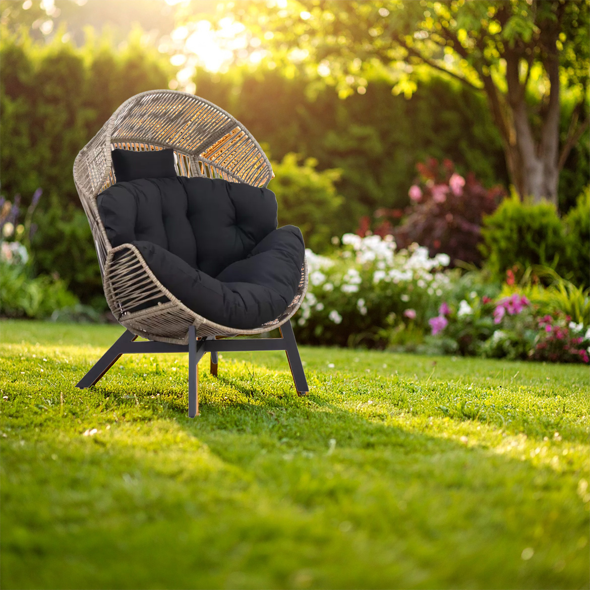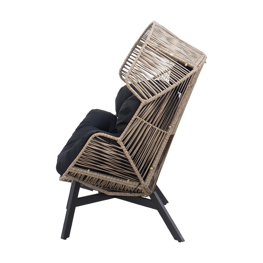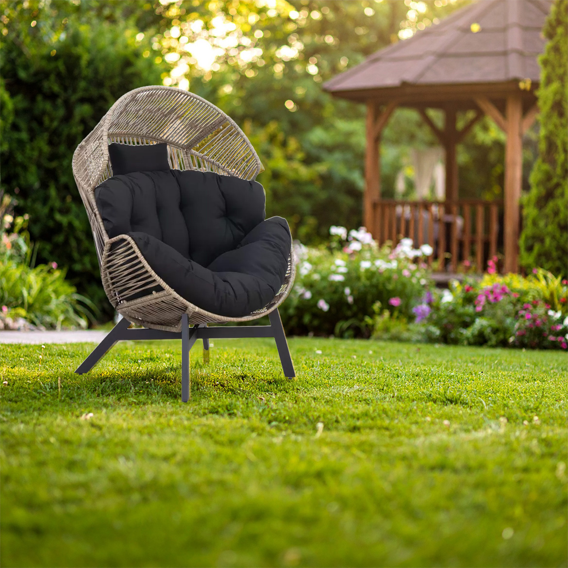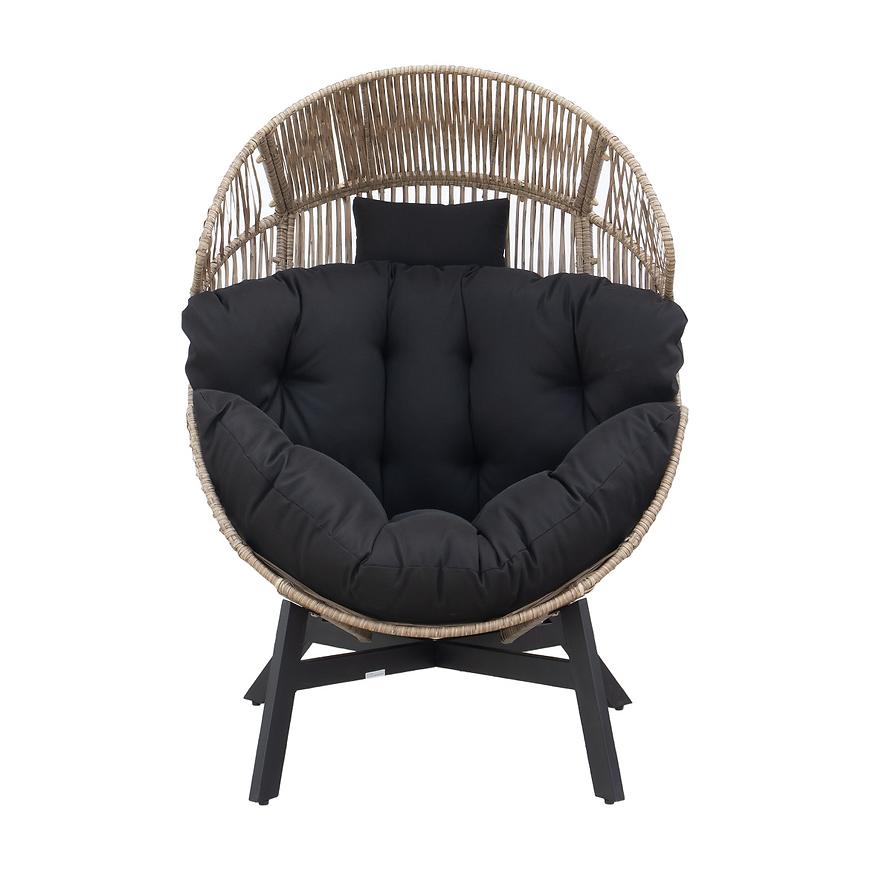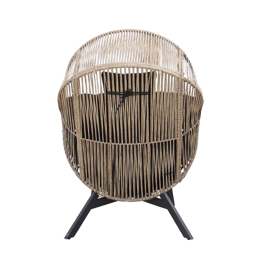 Fotel Dorota natural to wyjątkowy fotel wiszący do ogrodu i tarasu o oryginalnej, kokonowej formie. Wykonany z trwałego, odpornego na warunki atmosferyczne materiału w neutralnym, naturalnym odcieniu, zapewnia przyjemne wsparcie dla pleców dzięki głębokiemu siedzisku i opływowym plecom. Osadzony na stabilnej metalowej podstawie z czterema nogami, bez zawieszenia, kreuje stylowy i komfortowy punkt wypoczynku na świeżym powietrzu.
