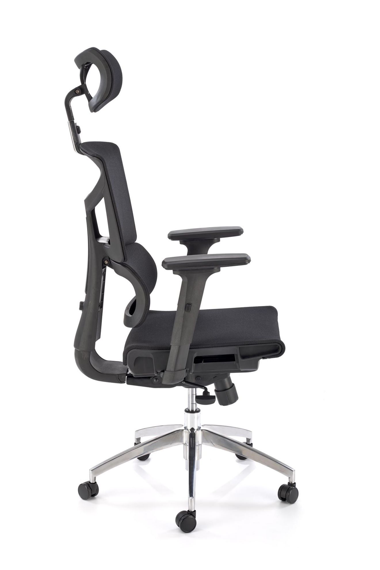 Dodatkowym atutem fotela Caris jest regulowany zagłówek, który zapewnia wsparcie dla głowy i szyi, co jest szczególnie ważne podczas długotrwałej pracy przy biurku. Wysuwane siedzisko umożliwia dostosowanie głębokości siedzenia do indywidualnych potrzeb, zapewniając maksymalny komfort użytkowania.