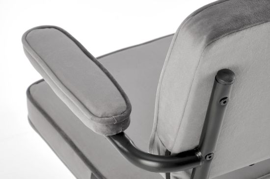 Fotel jest tapicerowany wysokiej jakości tkaniną velvet w kolorze popielatym. Ta delikatna, neutralna barwa wprowadza do wnętrza subtelny akcent i doskonale harmonizuje z różnymi stylami dekoracji. Tkanina jest nie tylko przyjemna w dotyku, ale także trwała i łatwa w czyszczeniu, co zapewnia długotrwałą przyjemność z użytkowania fotela.