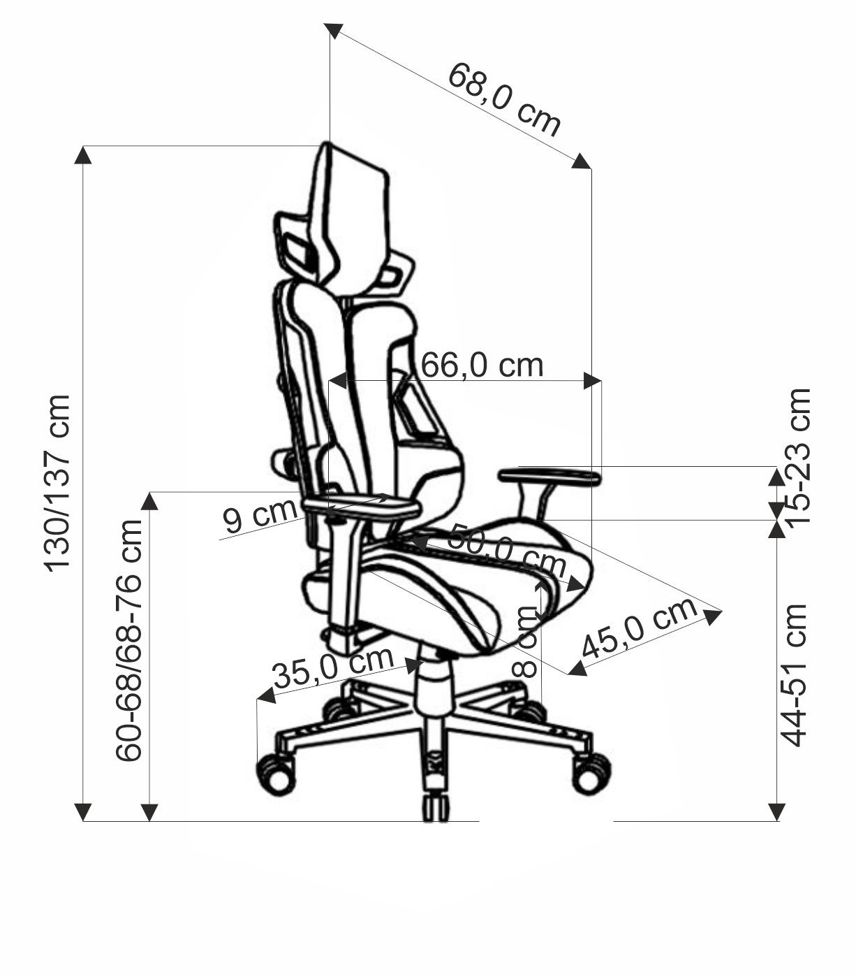 Fotel gabinetowy Fundo to połączenie komfortu, ergonomii i elegancji, zaprojektowany z myślą o wymagających użytkownikach. Jego wymiary wynoszą 66 cm szerokości, 68 cm głębokości, regulowana wysokość oparcia od 130 do 137 cm, oraz regulowana wysokość siedziska od 44 do 51 cm, co umożliwia dostosowanie fotela do indywidualnych potrzeb.