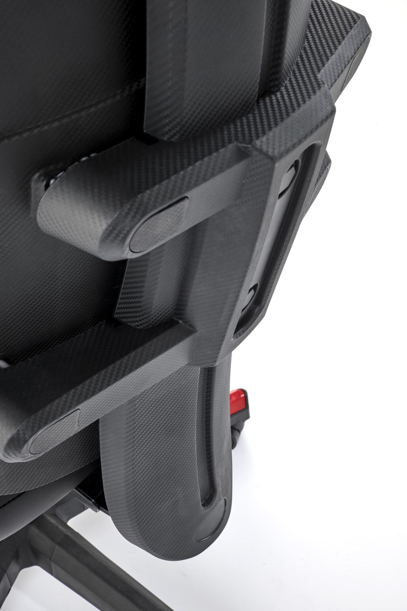 Obicie fotela wykonane jest z wysokiej jakości ekoksóry i tkaniny w kolorze czerny/czerwony, co nadaje mu nowoczesny i stylowy wygląd. Kolory dodają elegancji i sprawiają, że fotel świetnie komponuje się z różnymi aranżacjami biurowymi.