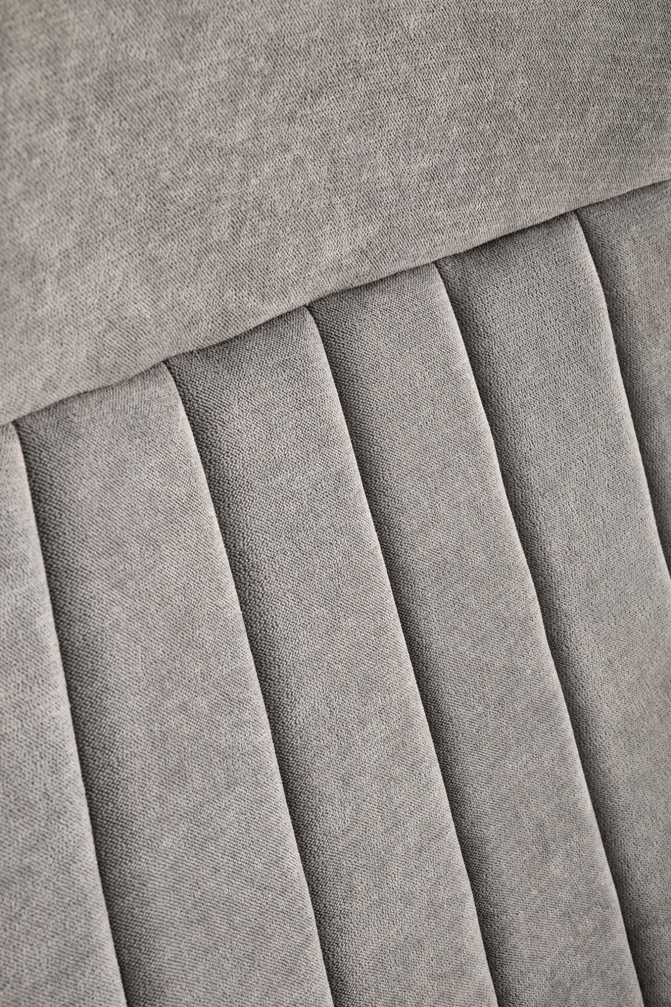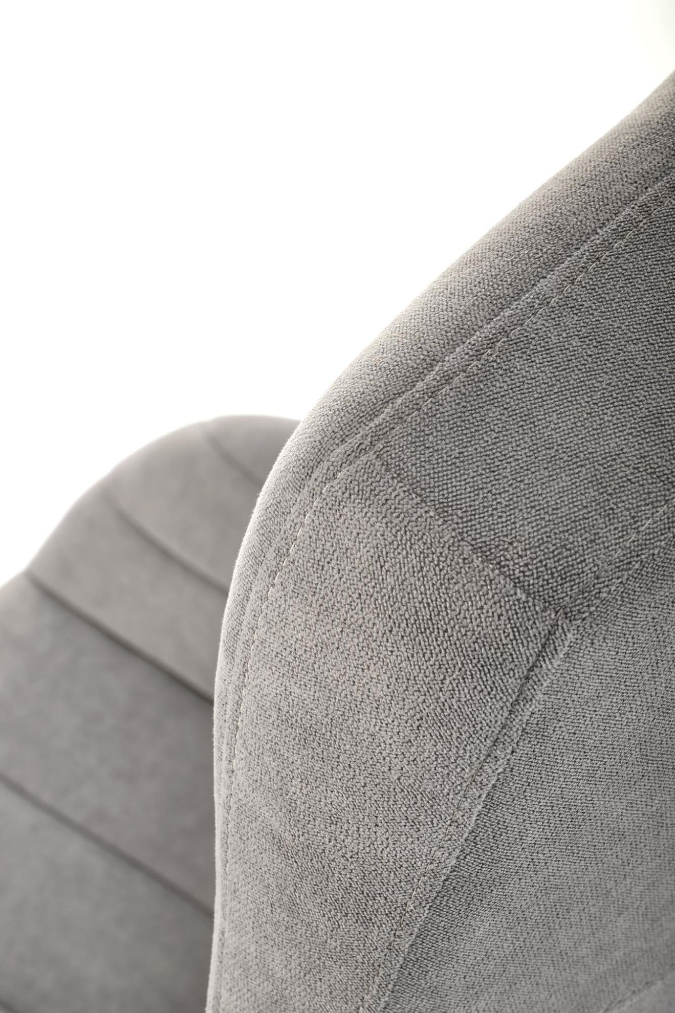 Fotel jest tapicerowany wysokiej jakości tkaniną w kolorze popielatym. Ta delikatna, neutralna barwa wprowadza do wnętrza subtelny akcent i doskonale harmonizuje z różnymi stylami dekoracji. Tkanina jest nie tylko przyjemna w dotyku, ale także trwała i łatwa w czyszczeniu, co zapewnia długotrwałą przyjemność z użytkowania fotela.