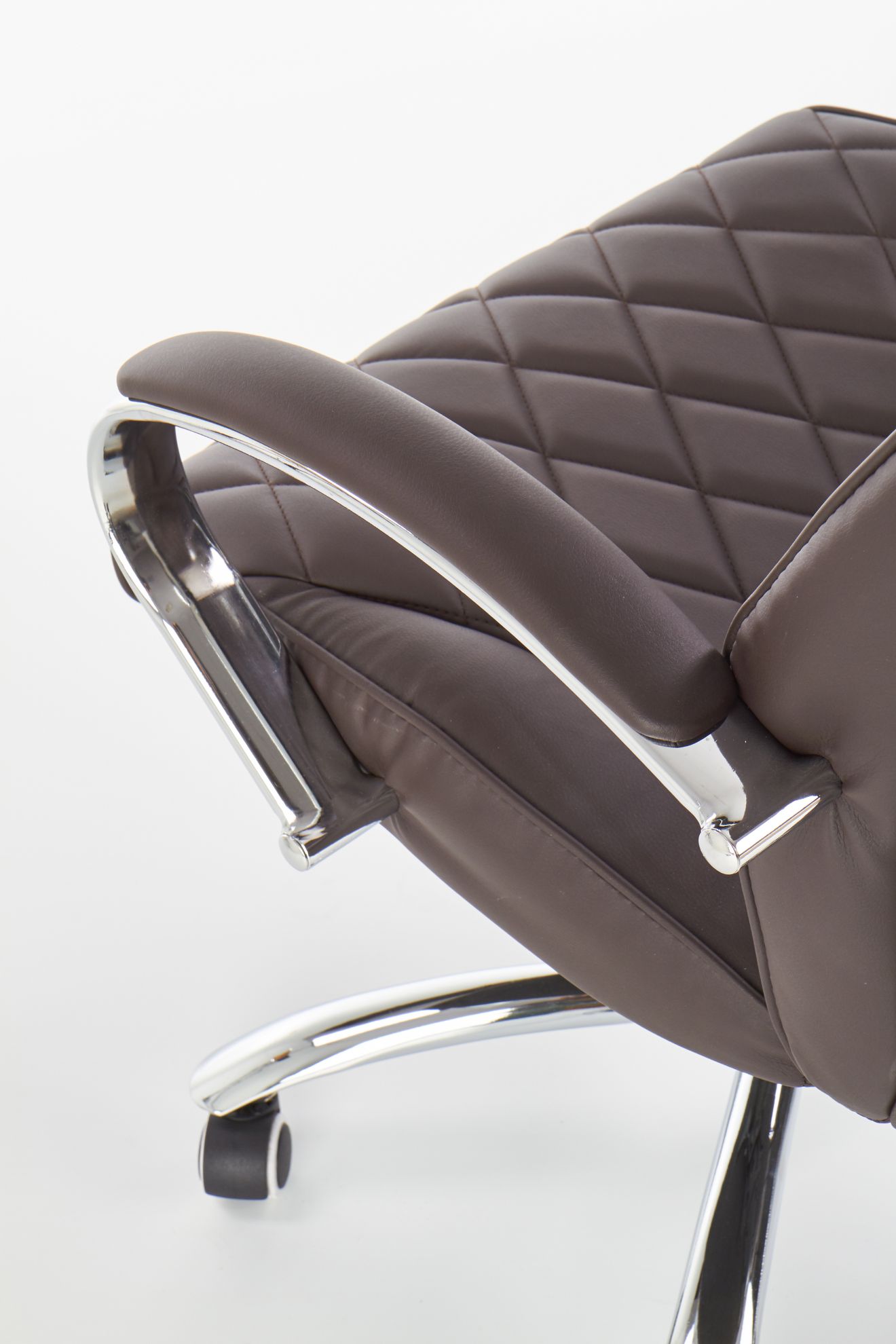 Fotel gabinetowy Holtin to eleganckie i funkcjonalne rozwiązanie do każdego biura, które łączy wygodę z profesjonalnym designem. Wykonany z wysokiej jakości ekoskóry w głębokim czekoladowym kolorze, doskonale wpisuje się w styl klasycznych oraz nowoczesnych wnętrz.