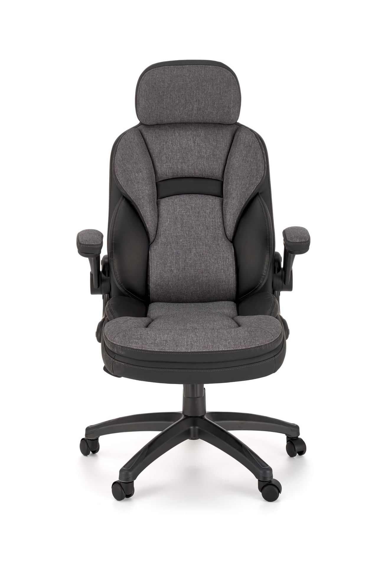 Kolorystyka fotela to stylowe połączenie czerni i popielatego, które nadaje mu nowoczesny i profesjonalny wygląd, idealnie pasujący do każdego gabinetu czy biura. Fotel gabinetowy Skampi to nie tylko praktyczny wybór, ale także elegancki element wyposażenia, który podkreśli prestiż Twojego miejsca pracy.