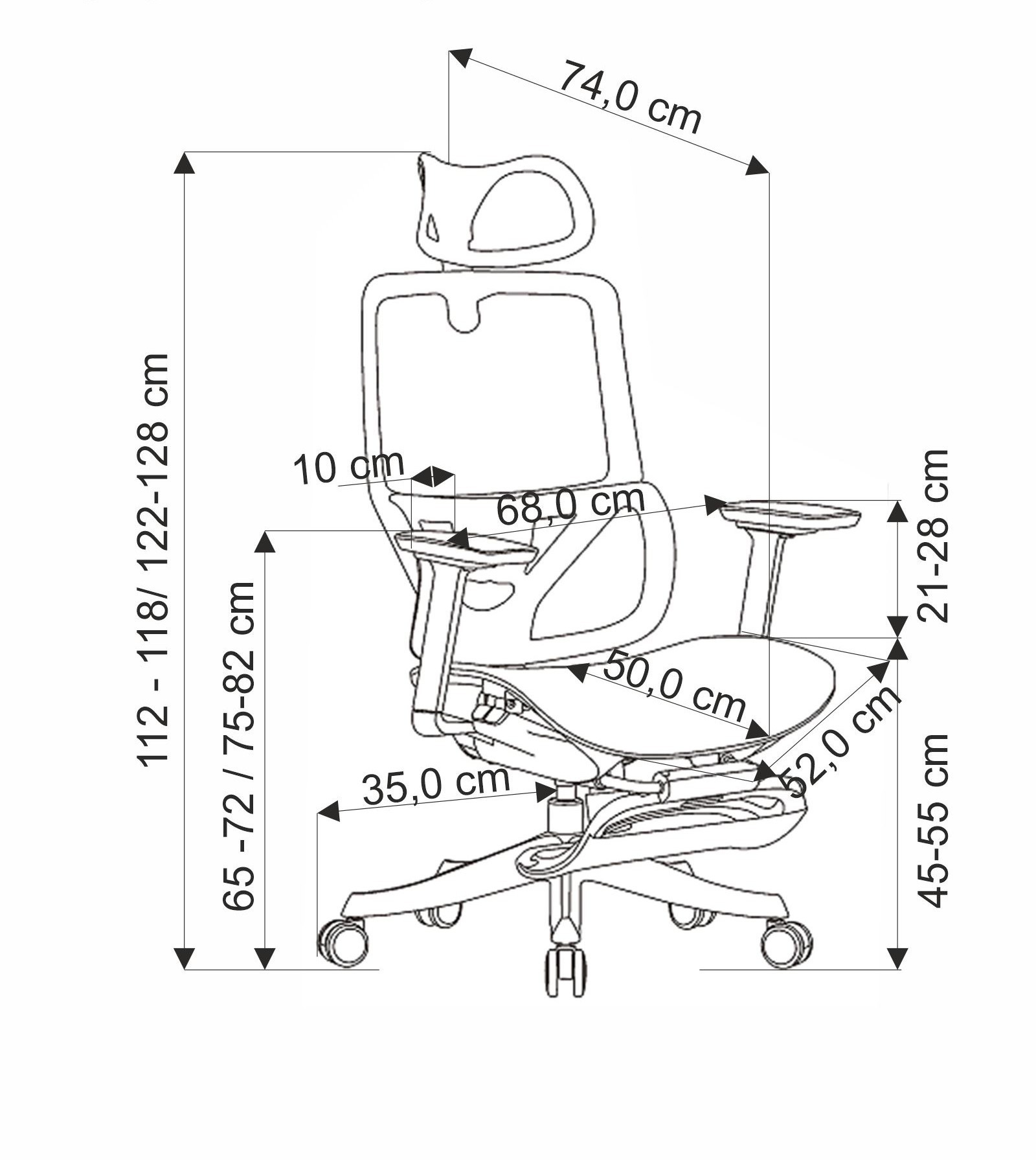 Fotel gabinetowy Valdi to idealne rozwiązanie dla osób ceniących komfort i ergonomię w miejscu pracy. Jego wymiary wynoszą 68 cm szerokości, 74 cm głębokości, a wysokość regulowana jest w zakresie od 122 do 128 cm, z siedziskiem na wysokości od 45 do 55 cm. Dzięki tym funkcjom fotel można dostosować do indywidualnych potrzeb użytkownika, zapewniając optymalne wsparcie i wygodę przez cały dzień.
