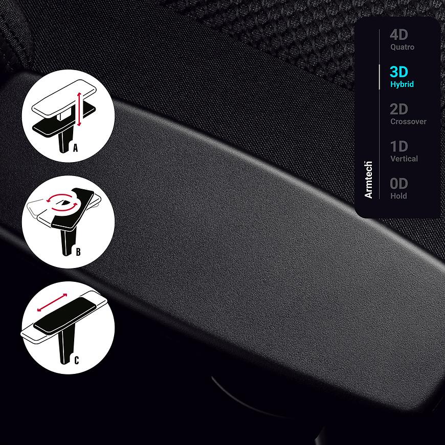 Miękkie podparcie podłokietników Armtech™ Hybrid SoftTouch, pokryte pianką, można precyzyjnie dostosować do swojej sylwetki i długości ramion, zapewniając stabilność i odciążając nadgarstki oraz przedramiona.