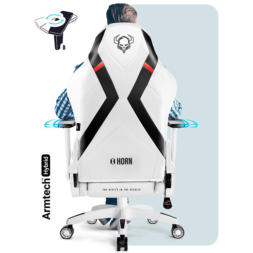 Z szerokością wynoszącą 68 cm i głębokością 68 cm, fotel X-Horn 2.0 dostarcza odpowiedniego miejsca do komfortowego siedzenia. Kombinacja kolorów nadaje mu dynamicznego wyglądu, który doskonale wpisuje się w estetykę.
