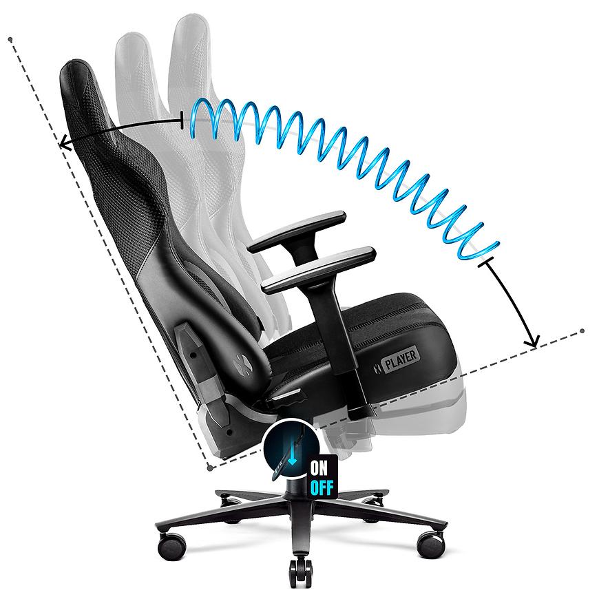 Jego wymiary zapewniają odpowiednią przestrzeń do swobodnego poruszania się podczas długich sesji grania. Kolorystyka dodaje fotelowi elegancji i nowoczesności, doskonale komponując się z wnętrzem.