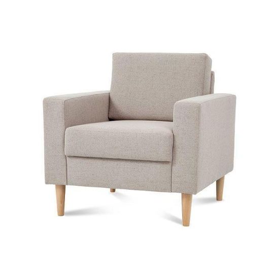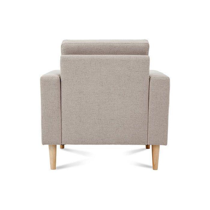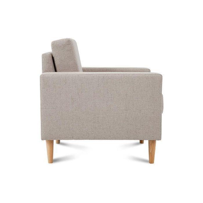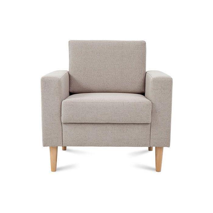 Fotel Kayla w stylowym odcieniu beżu, to wyraz minimalistycznego wzornictwa i ponadczasowej elegancji. Prosta bryła w połączeniu z uniwersalną kolorystyką sprawiają, że mebel sprawdzi się zarówno w klasycznych salonach, jak i nowoczesnych wnętrzach. Wartość wizualną tego modelu podkreśla obecność wysokich, drewnianych nóżek w naturalnym odcieniu. Poza walorami wizualnymi mebel odznacza się również wysokim komfortem użytkowania. Jest to efekt szerokiego siedziska, w którym zastosowano sprężyny faliste oraz wyprofilowanego oparcia, które wypełnione zostało za pomocą pianki. Na wygodę podczas odpoczynku wpływa również obecność wysokich podłokietników. Fotel Kayla w uniwersalnej kolorystyce to stylowe, a zarazem praktyczne rozwiązanie. W połączeniu z pufą z tej samej kolekcji tworzy efektowne i jeszcze bardziej funkcjonalne miejsce relaksu.
