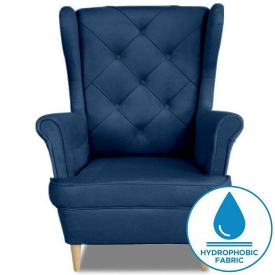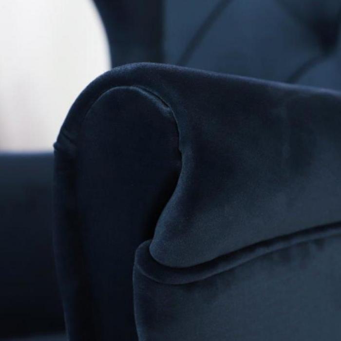 Fotel Kingston Bis Monolith 77 OO/1 łączy nowoczesny design z komfortem użytkowania. Granatowe obicie z tkaniny hydrofobowej jest odporne na plamy i łatwe w utrzymaniu czystości, a subtelne pikowania dodają elegancji i charakteru wnętrzu.